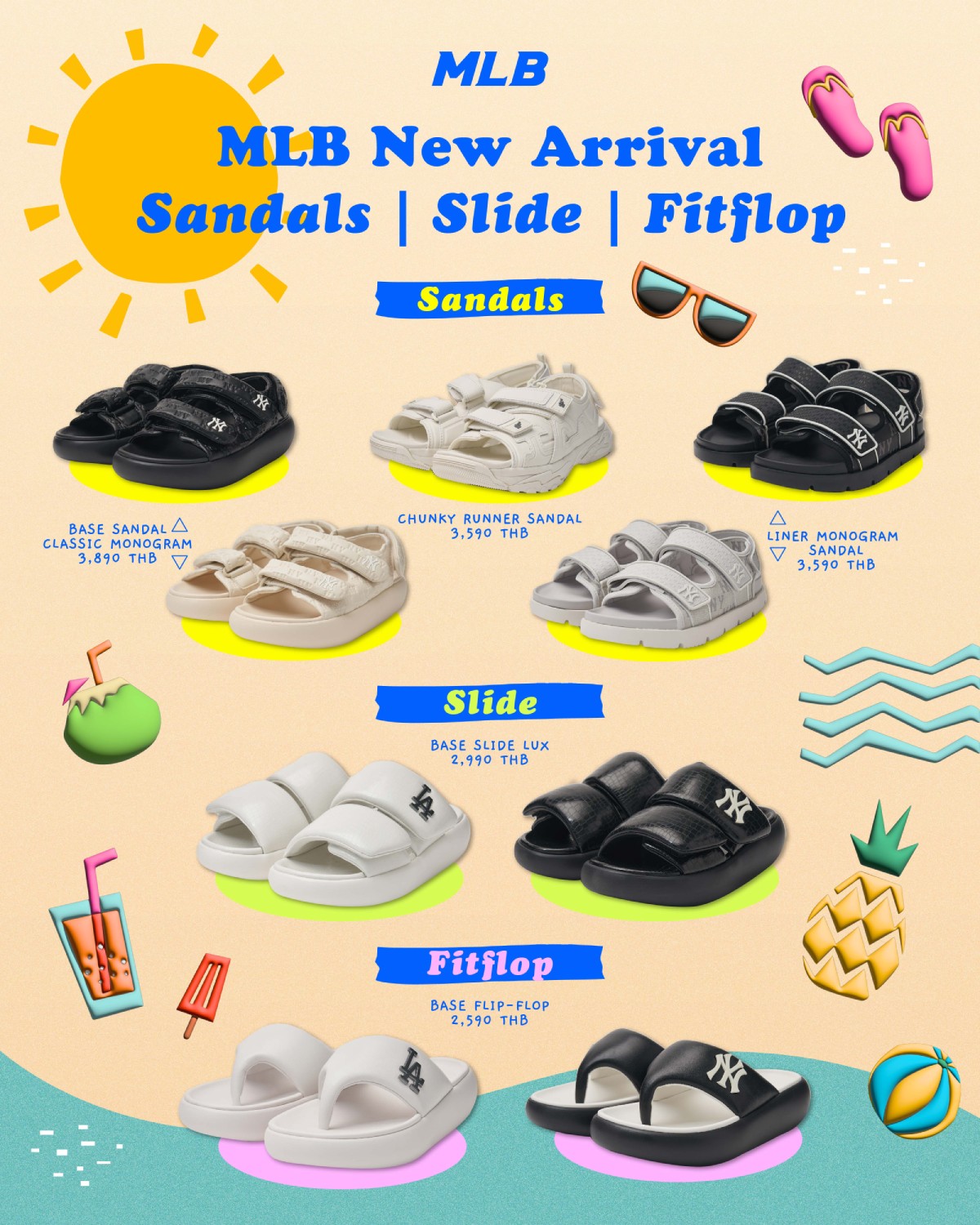 รวมลิสต์รองเท้ารุ่นใหม่ล่าสุด!ที่มาพร้อมกับดีไซน์ใหม่ๆ หลากหลายแบบเหมาะกับอากาศบ้านเรา ขนมาหมดทั้ง Sandals, Slide และ Fitflop สวมใส่ง่ายเดินสบายแบบสายแฟ เป็นอีกหนึ่งไอเท็มที่แฟน MLB ห้ามพลาด!