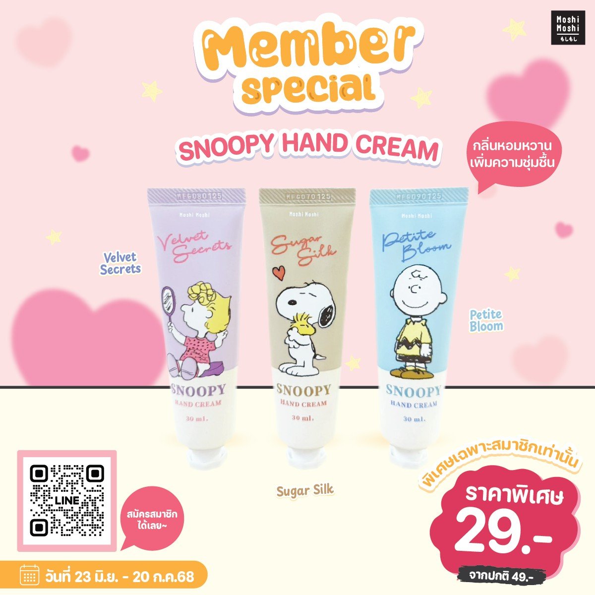 Member Special โปรโมชั่นสำหรับ Member เมื่อซื้อ SNOOPY HAND CREAM ราคาปกติ 49 บาท พิเศษเฉพาะสมาชิก ราคาพิเศษเหลือเพียง 29 บาทเท่านั้น