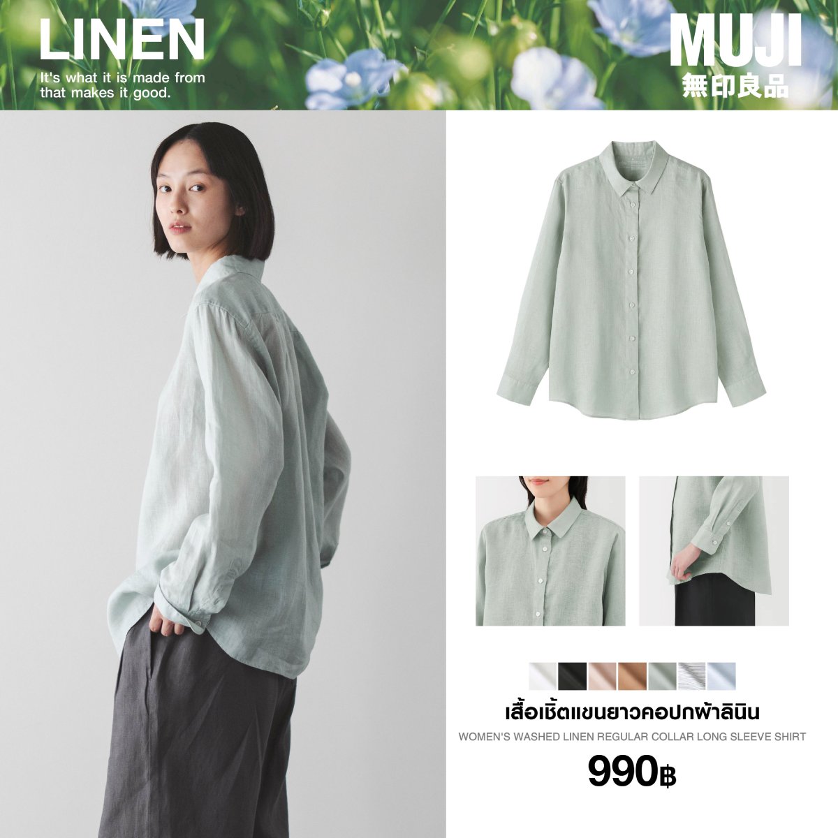 MUJI LINEN เสื้อลินินจากมูจิ สัมผัสความนุ่มนวลทุกครั้งที่สวมใส่ โดดเด่นด้วยคุณสมบัติของผ้าลินิน ที่จะนุ่มและใส่สบายขึ้นเมื่อซักหลายๆ ครั้ง เหมาะกับการสวมใส่ในชีวิตประจำวัน มาพร้อมดีไซน์ที่สวย เรียบง่าย ใส่ได้ทุกโอกาส