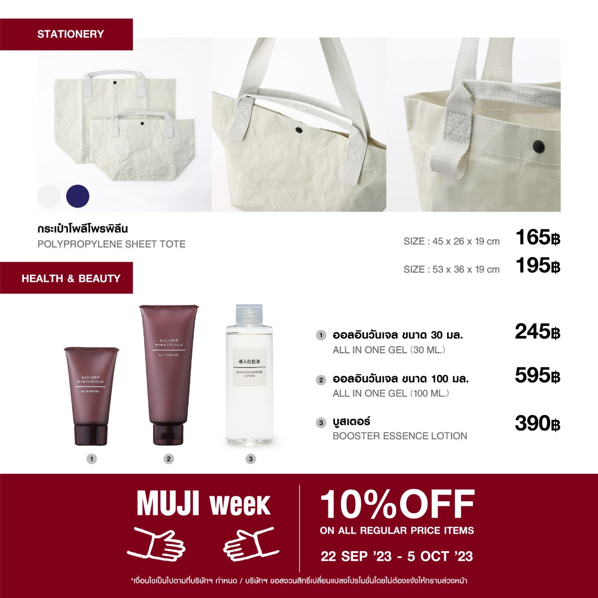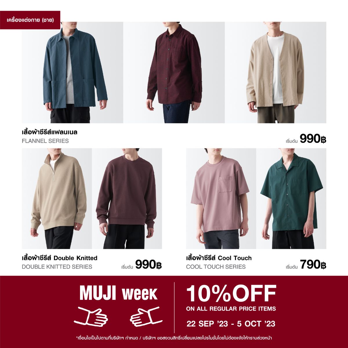 MUJI Week สัปดาห์แห่งการขอบคุณ มูจิจัดโปรโมชั่นลด 10% ทุกรายการ* วันที่ 22 ก.ย. 66 – 5 ต.ค. 66