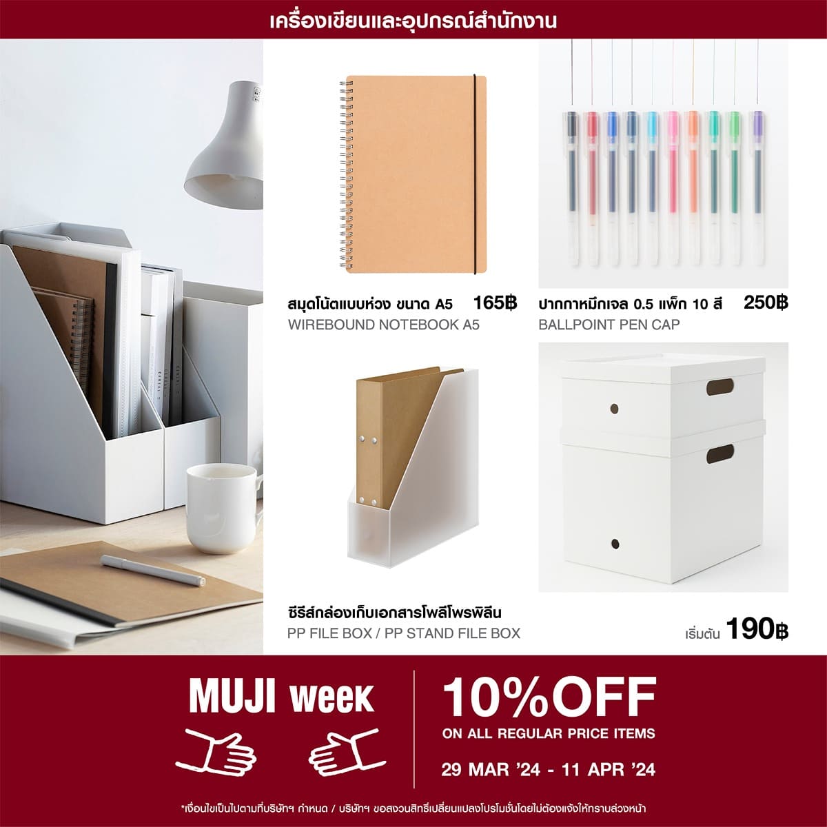 22 Mar 2567สาวกมูจิมาทางนี้! MUJI Week สัปดาห์แห่งการขอบคุณลูกค้ามูจิ มอบส่วนลด 10%* สำหรับการซื้อสินค้ามูจิทุกหมวดหมู่*