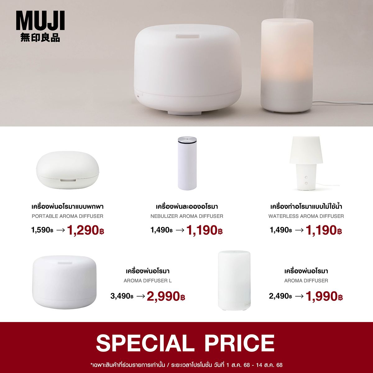 Special Offers สินค้าราคาพิเศษหลากหลายหมวดหมู่ไม่ว่าจะเป็นเครื่องหอม สกินแคร์ ชุดเครื่องนอน กระเป๋าใส่เครื่องสำอาง เครื่องใช้ไฟฟ้า และอื่นๆ อีกมากมาย รอให้คุณมาเลือกช้อปแล้ววันนี้ที่มูจิ