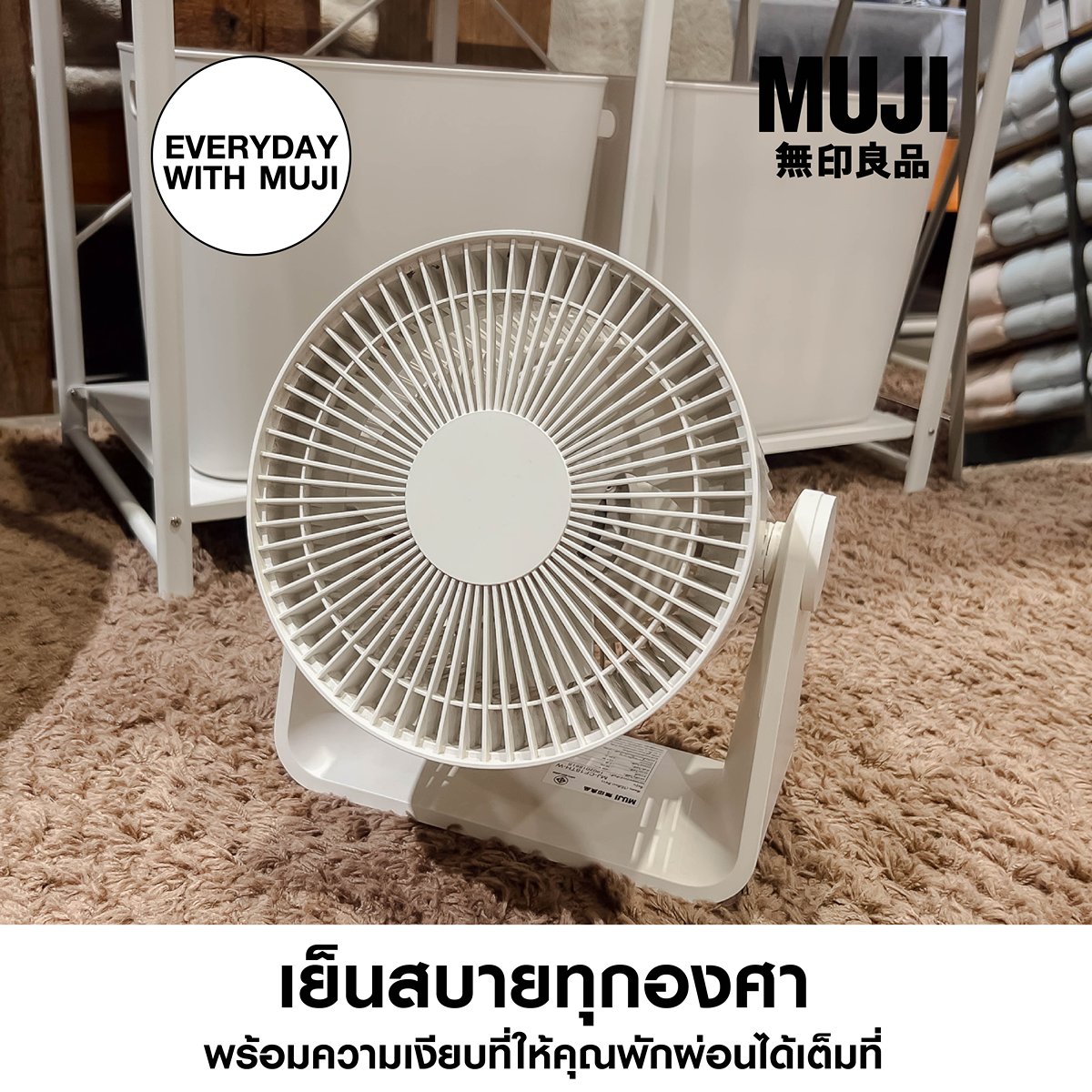 EVERYDAY WITH MUJI : พัดลมปรับอากาศ Low-Noise เย็นสบาย อากาศสดชื่น แถมไร้เสียงรบกวนด้วย พัดลมปรับอากาศ Low-Noise หมุนได้ 90° พร้อมกระจายลมอย่างทั่วถึง ดีไซน์สวยเหมาะกับทุกมุมห้อง⁣⁣