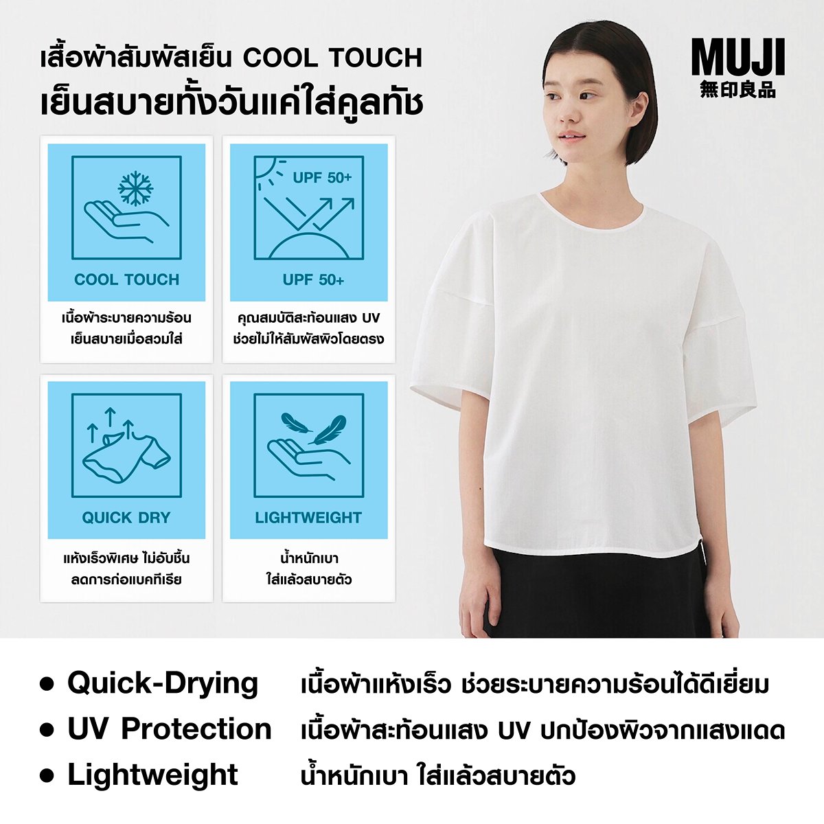 คุณสมบัติเด่นของเสื้อผ้ามูจิ Cool Touch⁣⁣