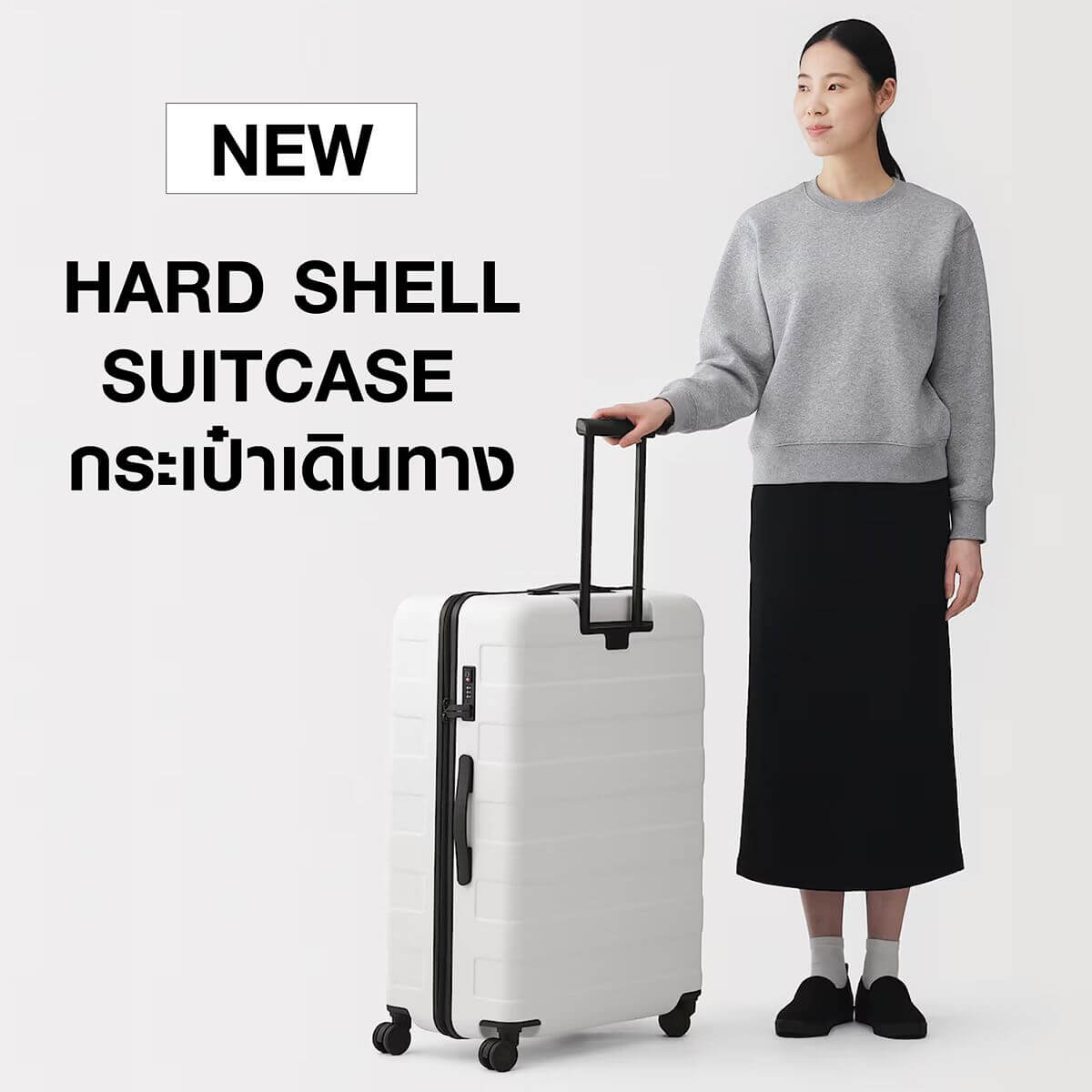 [New Arrivals] HARD SHELL SUITCASE กระเป๋าเดินทางรุ่นใหม่จากมูจิ ที่ถูกพัฒนามาและผ่านการออกแบบใหม่เพื่อตอบโจทย์การใช้งานจริง ผสมผสานทั้งความทนทานและความปลอดภัยไว้อย่างลงตัว
