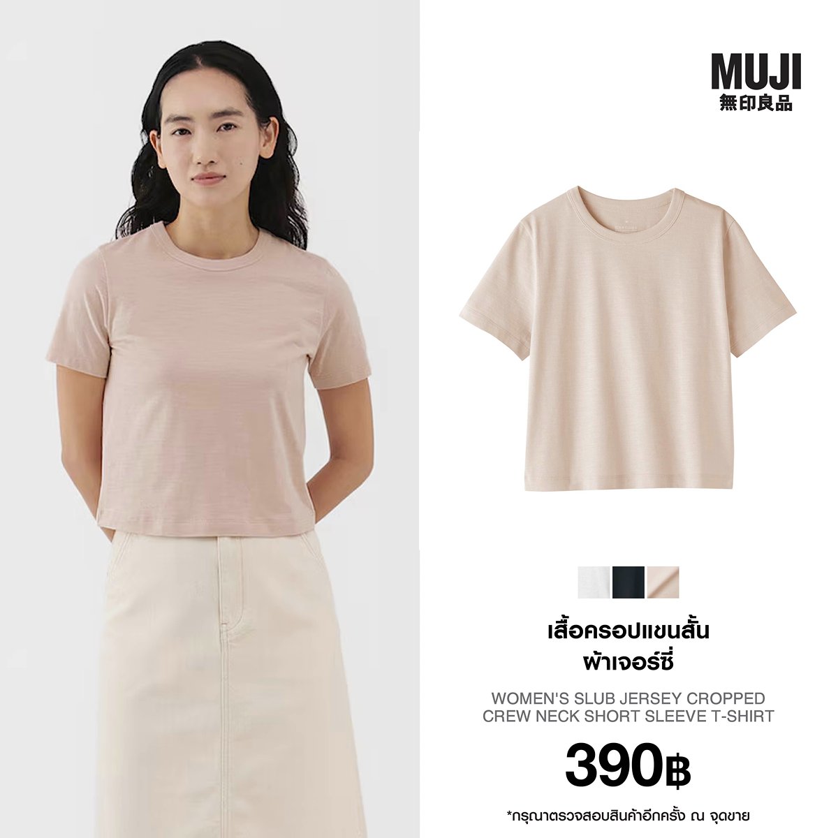 NEW : เสื้อยืดผ้าเจอร์ซี่ เบสิกไอเท็มจากมูจิที่ควรมีติดตู้ นุ่มสบาย ระบายอากาศได้ดี ด้วยคุณสมบัติเนื้อผ้าที่ยืดหยุ่น ใส่สบายคล่องตัว เหมาะกับการใส่เป็นชุดลำลอง หรือแมทช์กับไอเท็มอื่น ๆ ได้ง่ายและมีสไตล์