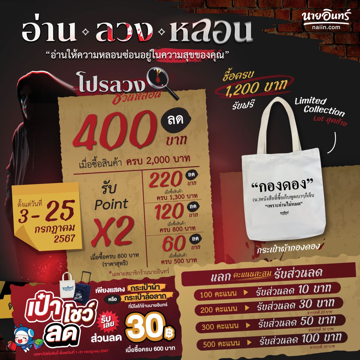 #อ่านลวงหลอน #เป๋าโชว์ลด #มหกรรมนิยาย2024 #มหกรรมนิยายนานาชาติ 2024 #นายอินทร์ #ร้านนายอินทร์ #naiin #naiinfamily #campaingnaiinmpaingnaiin #campaignnaiin2024