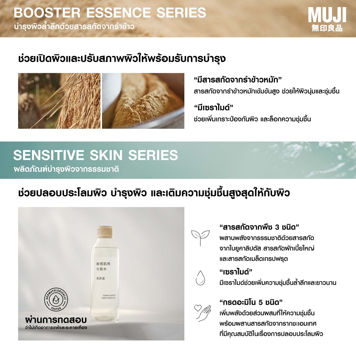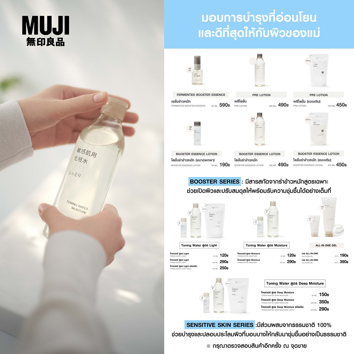 - มูจิคัดสรรส่วนผสมจากธรรมชาติที่ดีที่สุด 100% มั่นใจได้ว่าอ่อนโยนต่อผิวและปราศจากสารเคมีอันตราย