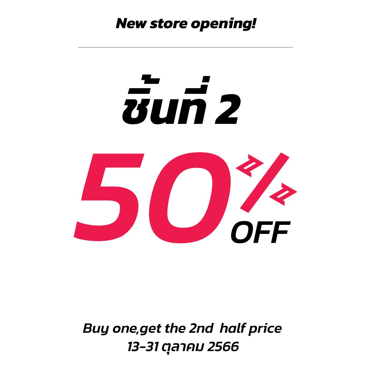 New store opening! ชิ้นที่ 2 ลด 50%
