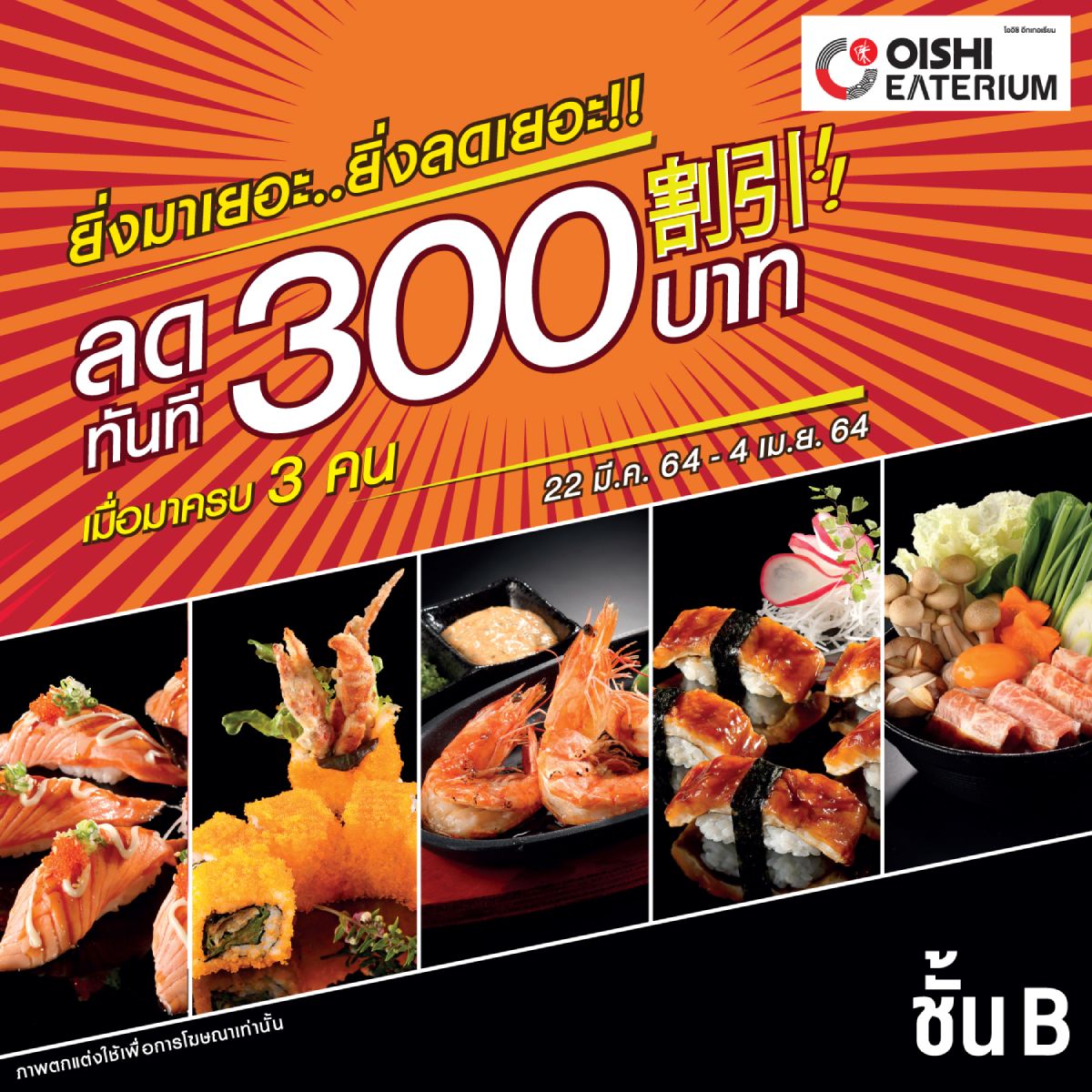Oishi Eaterium “ลดทันที 300 บาทเมื่อมา 3 คน”