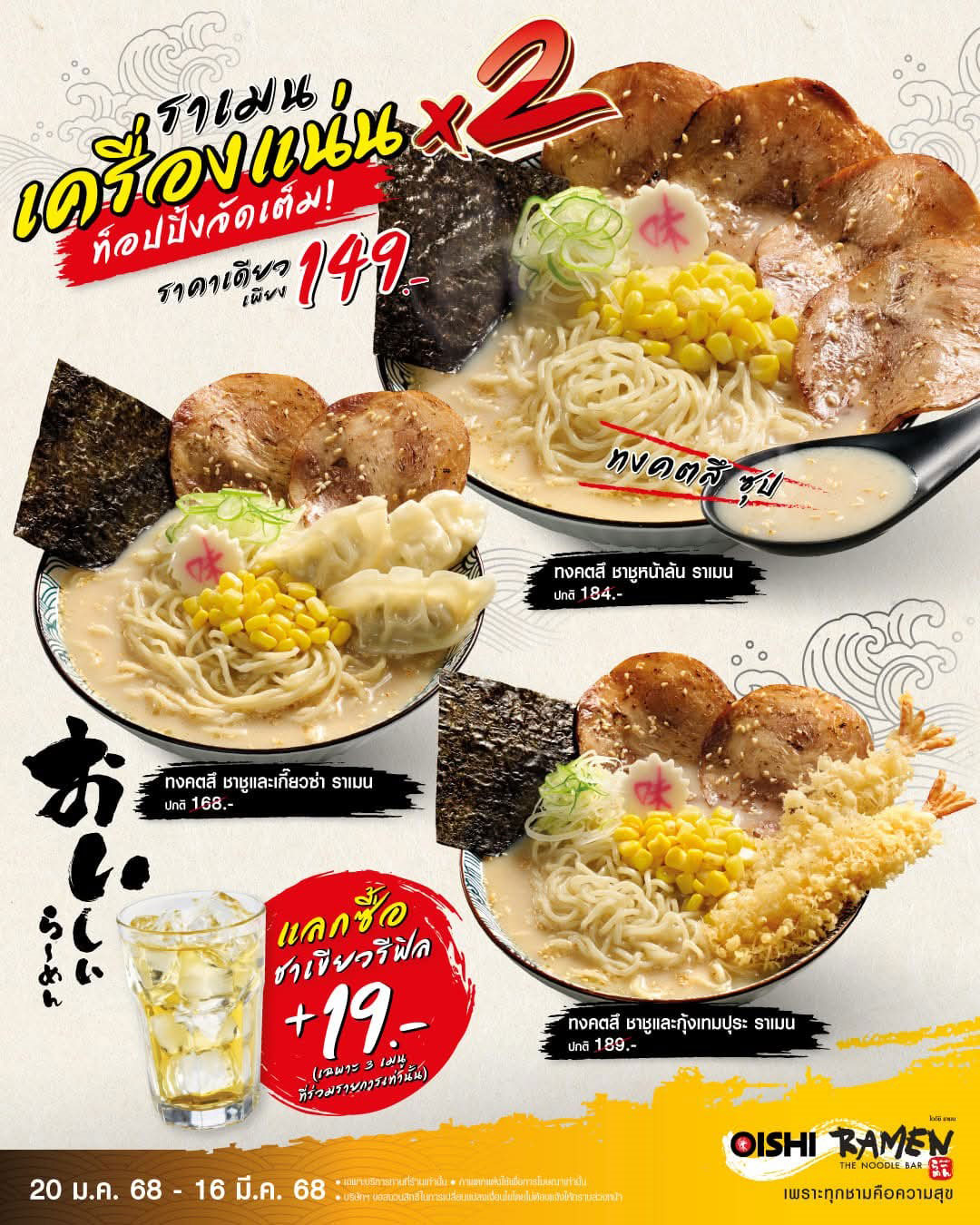 อร่อยจุใจกับ โปรโมชั่นใหม่ #ราเมนเครื่องแน่น x2 ในราคาพิเศษเพียง 149.- ที่ร้าน Oishi Ramen ทุกสาขา