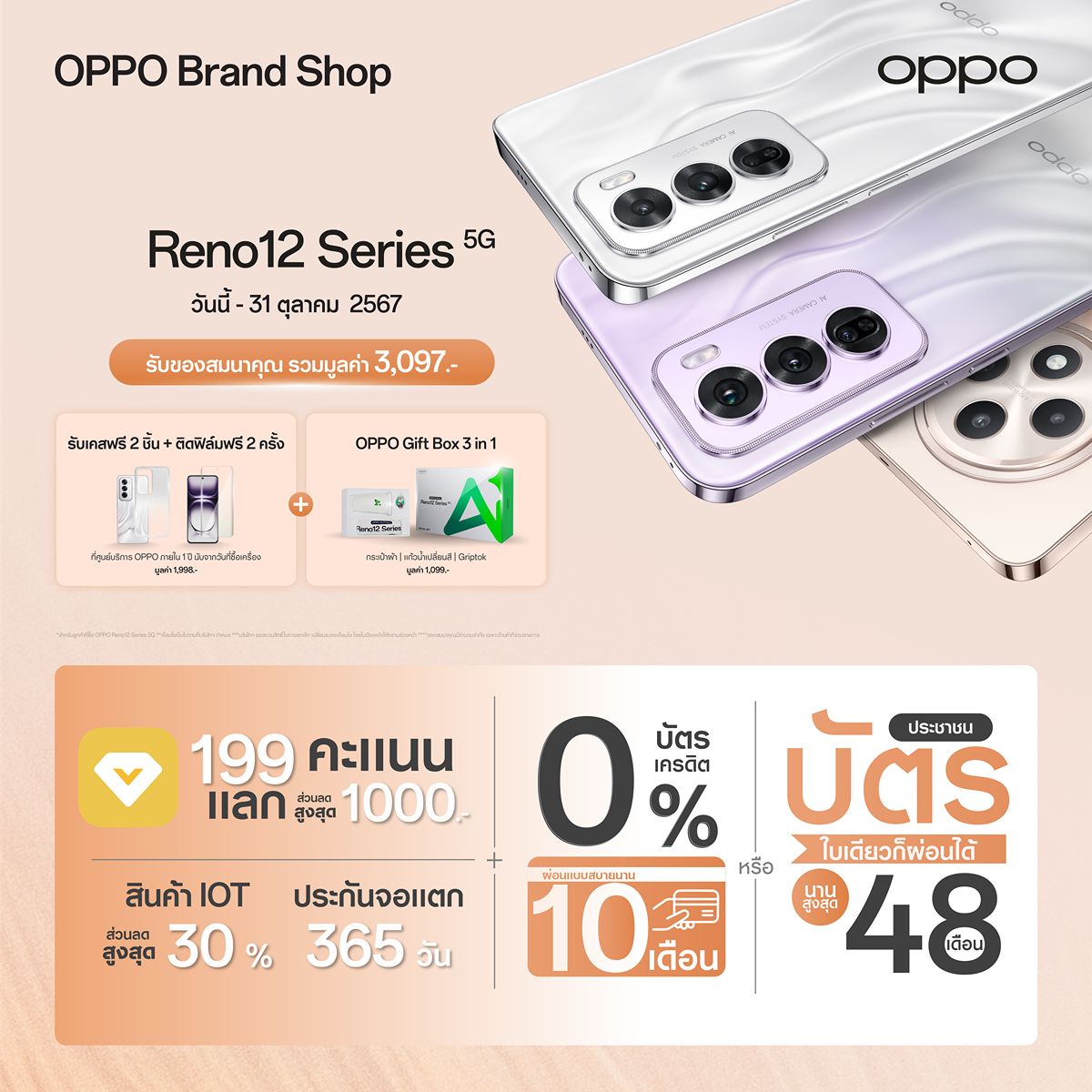 มัดรวมมาให้แล้วโปรโมชั่นเดือนตุลาคม สามารถเลือกช้อปได้แล้วกับ สมาร์ตโฟน OPPO ที่พร้อมพาทุกคนยกระดับประสบการณ์ความบันเทิง และความทนทานในราคาสุดคุ้ม!