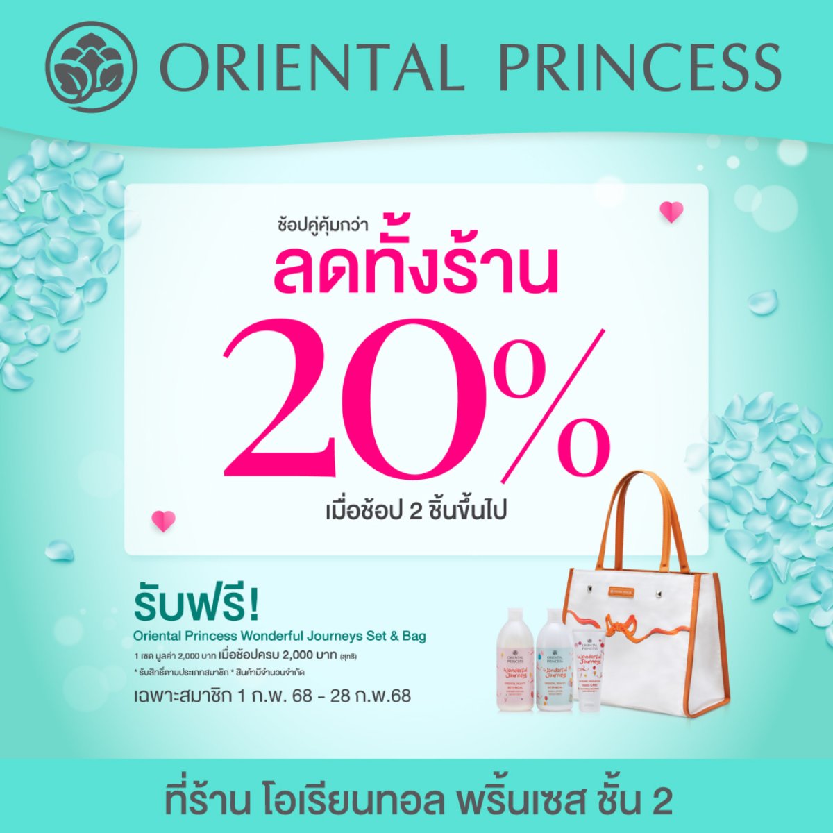 ลด 20% เมื่อช้อป 2 ชิ้นขึ้นไป พิเศษ รับฟรี Oriental Princess Wonderful Journeys Set & Bag มูลค่า 2,000 บาท