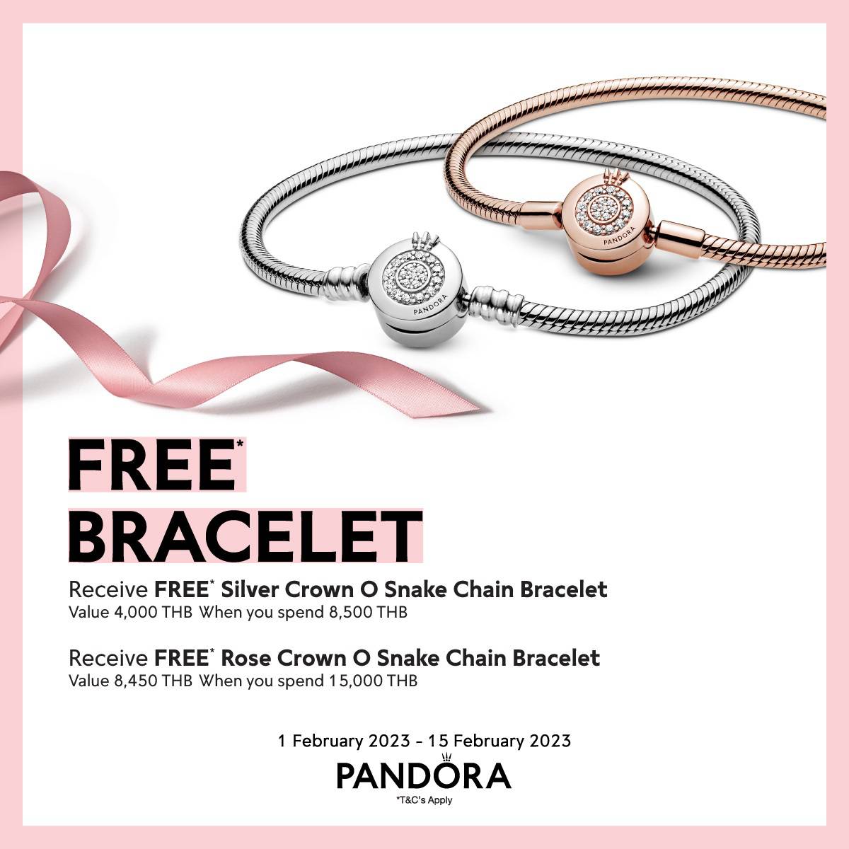 รับฟรี* Rose Crown O Snake Chain Bracelet (มูลค่า 8,450 บาท) เมื่อช็อปสินค้าครบ 15,000 บาท