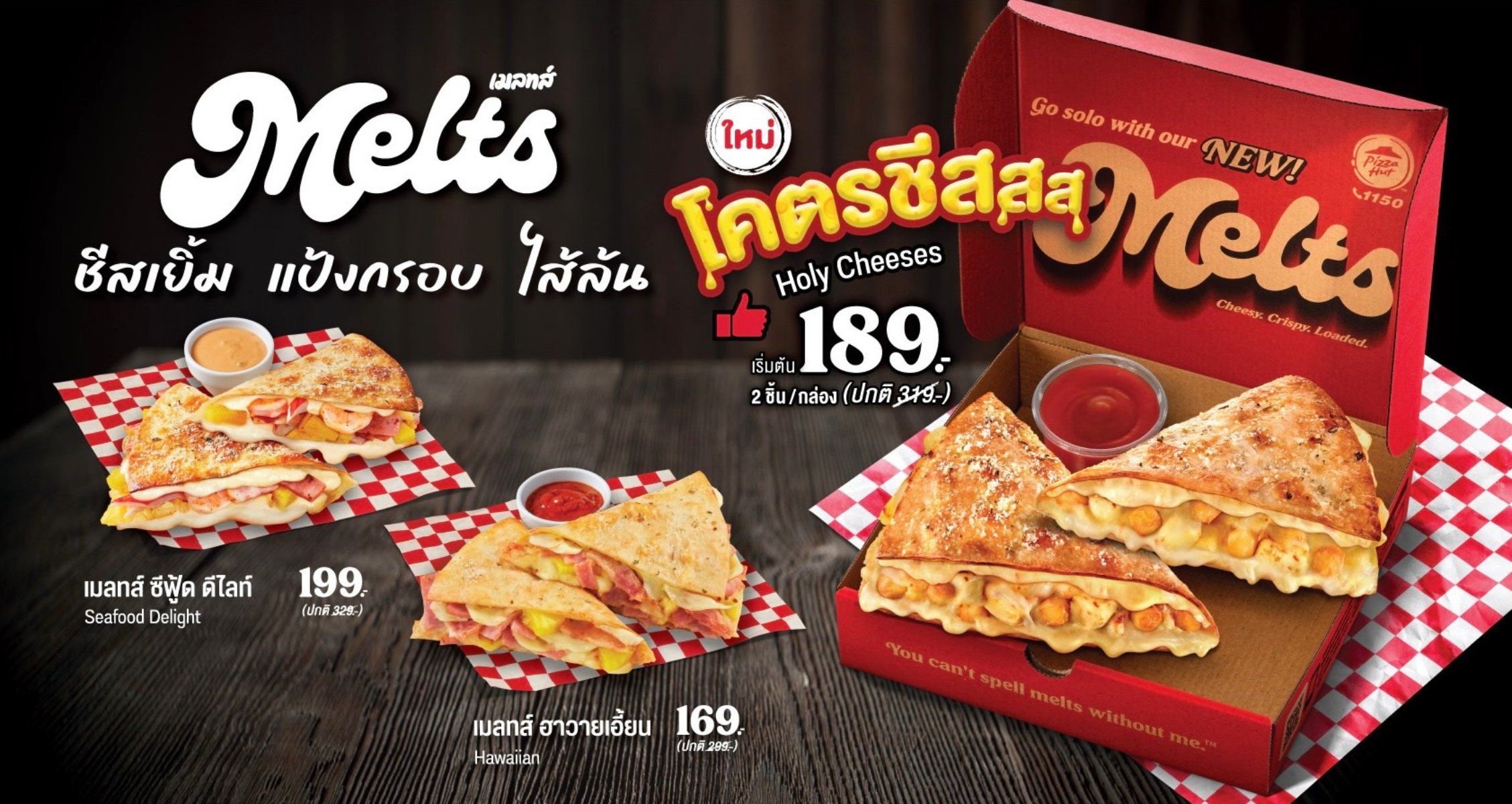 PIZZA HUT Go Solo with our new melts ชีสเยิ้ม แป้งกรอบ ไส้ล้น