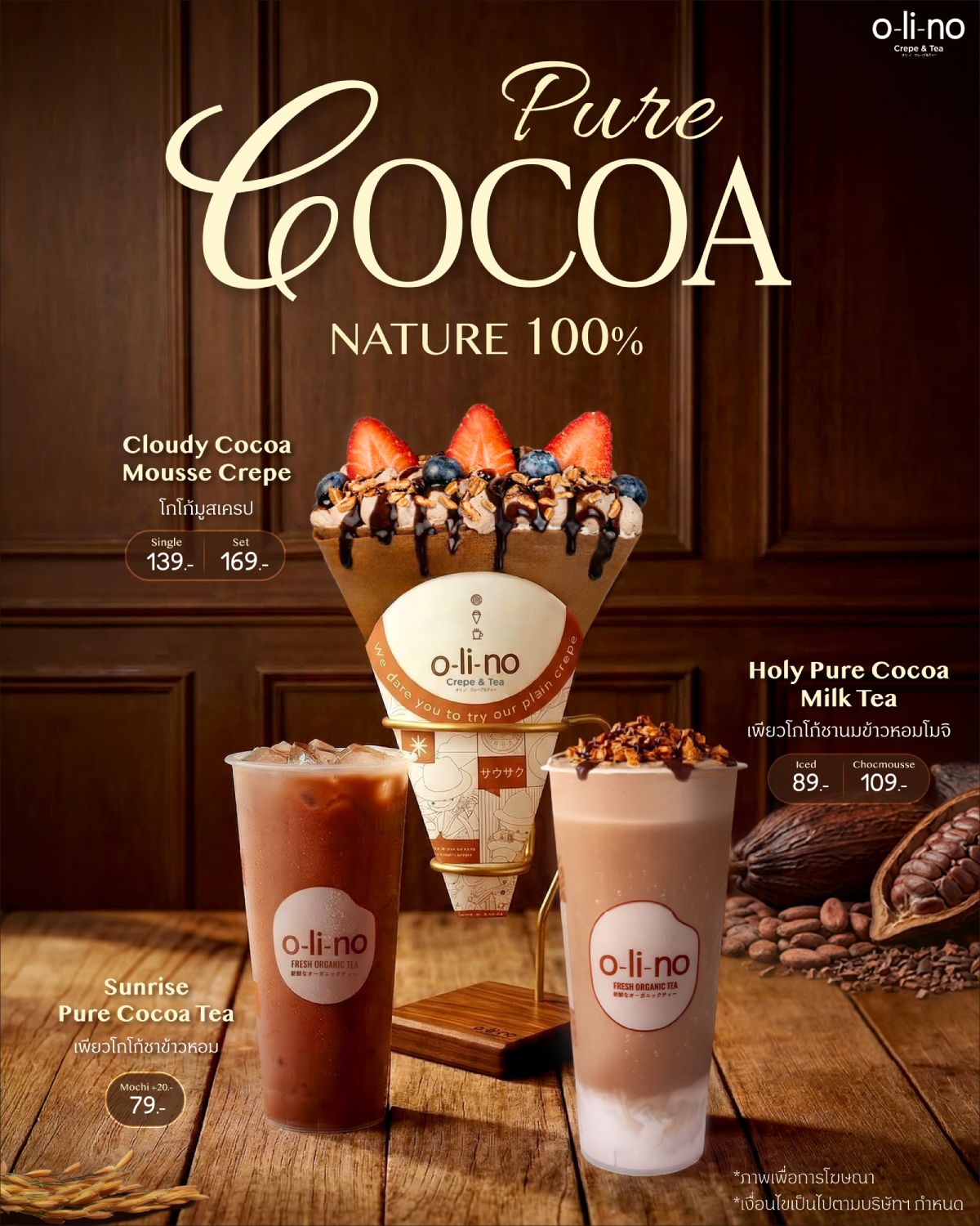 01 Apr 2569NEW! Pure Cocoa Nature 100% จาก Olino Crepe & Tea