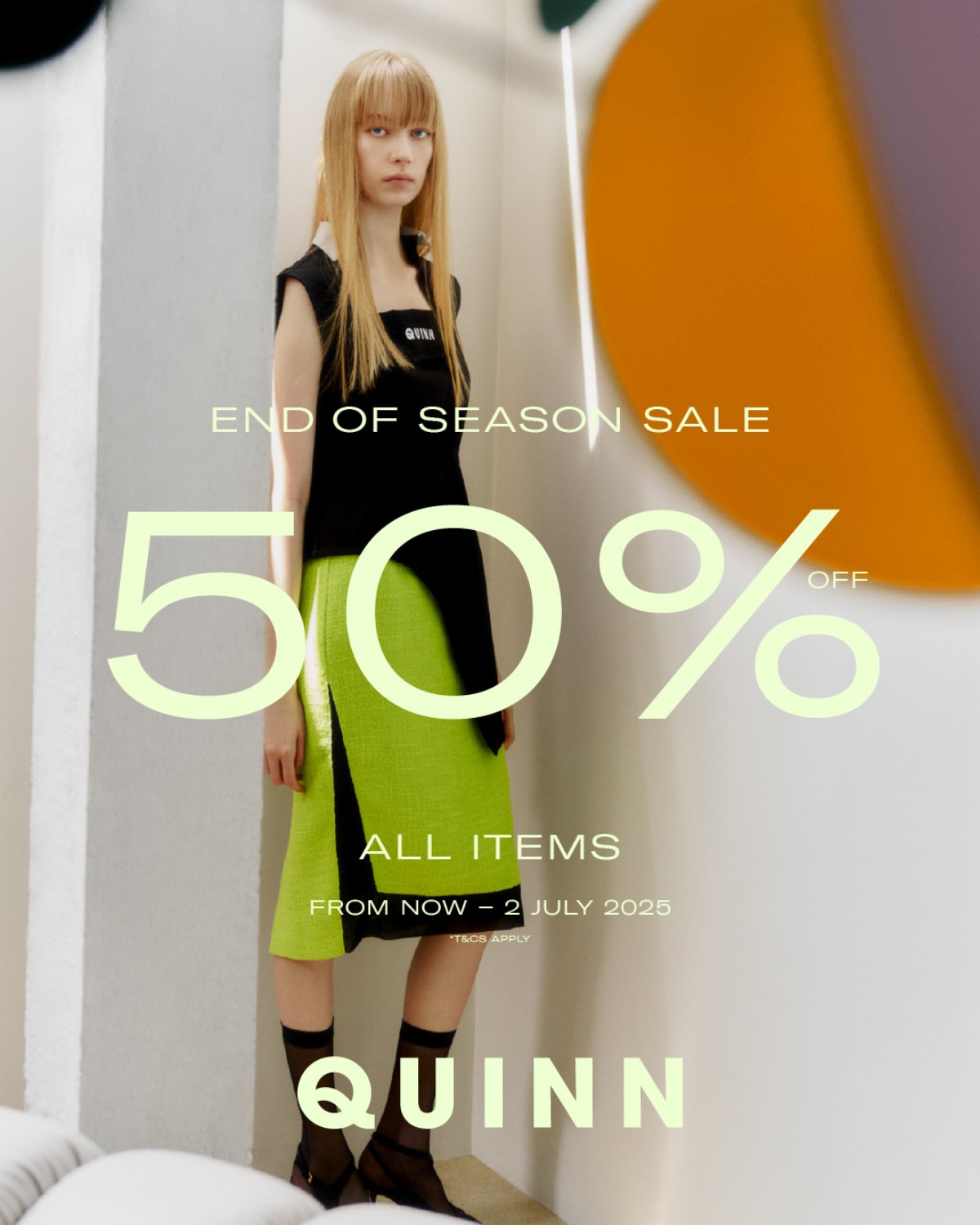 QUINN ส่งท้ายซีซั่นแบบปังๆ กับ END OF SEASON SALE ลด 50% ทั้งร้าน มีครบทั้งเสื้อผ้ารองเท้า กระเป๋า