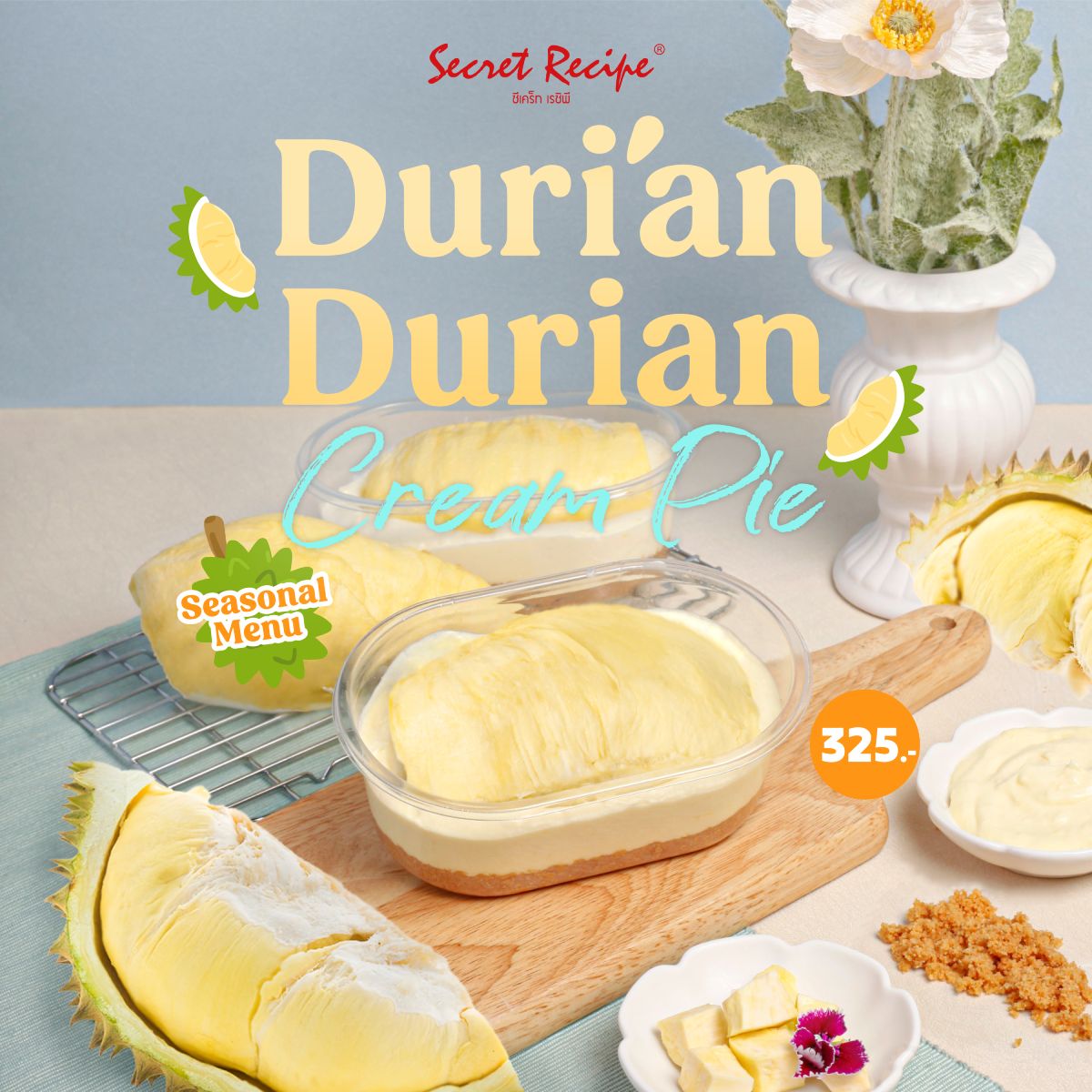 และ The Best ของปีนี้ Durian Druian Cream pie เนื้อทุเรียนสด รสชาติหวานมัน หอมกระแทกใจ บิสกิตกรุบกรอบหอมกลิ่นข้าวโอ๊ต ทานคู่กับครีมสดเนื้อนุ่ม ที่ผสมซอสทุเรียนหมอนทองโฮมเมด และแต่งหน้าด้วยทุเรียนหมอนทองชิ้นโตๆวางจนล้นกล่อง
