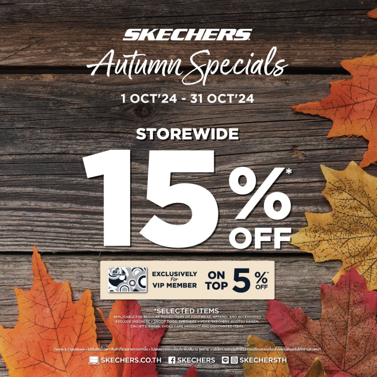 SKECHERS Autumn Specials รับส่วนลด 15% เมื่อซื้อสินค้าที่ร่วมรายการ สิทธิพิเศษเฉพาะ VIP Member รับส่วนเพิ่มทันที 5% ตลอดรายการ