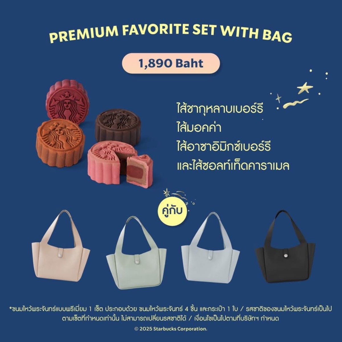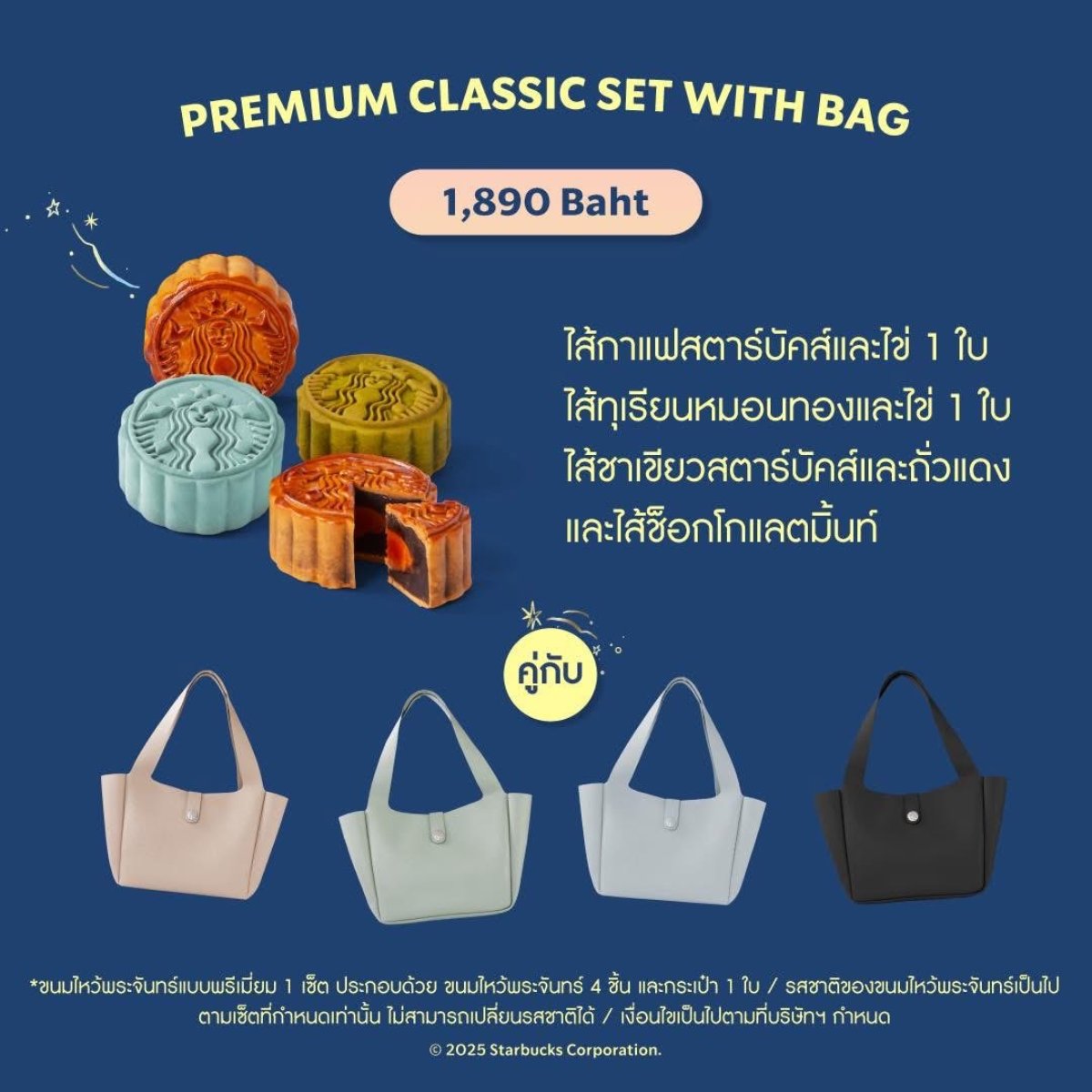 - Premium Set ทั้งแบบ Classic Set และ Favorite Set เซ็ตละ 1,890 บาท ในเซ็ตมีขนม 4 ชิ้น* พร้อมกระเป๋าสวยๆ 1 ใบ