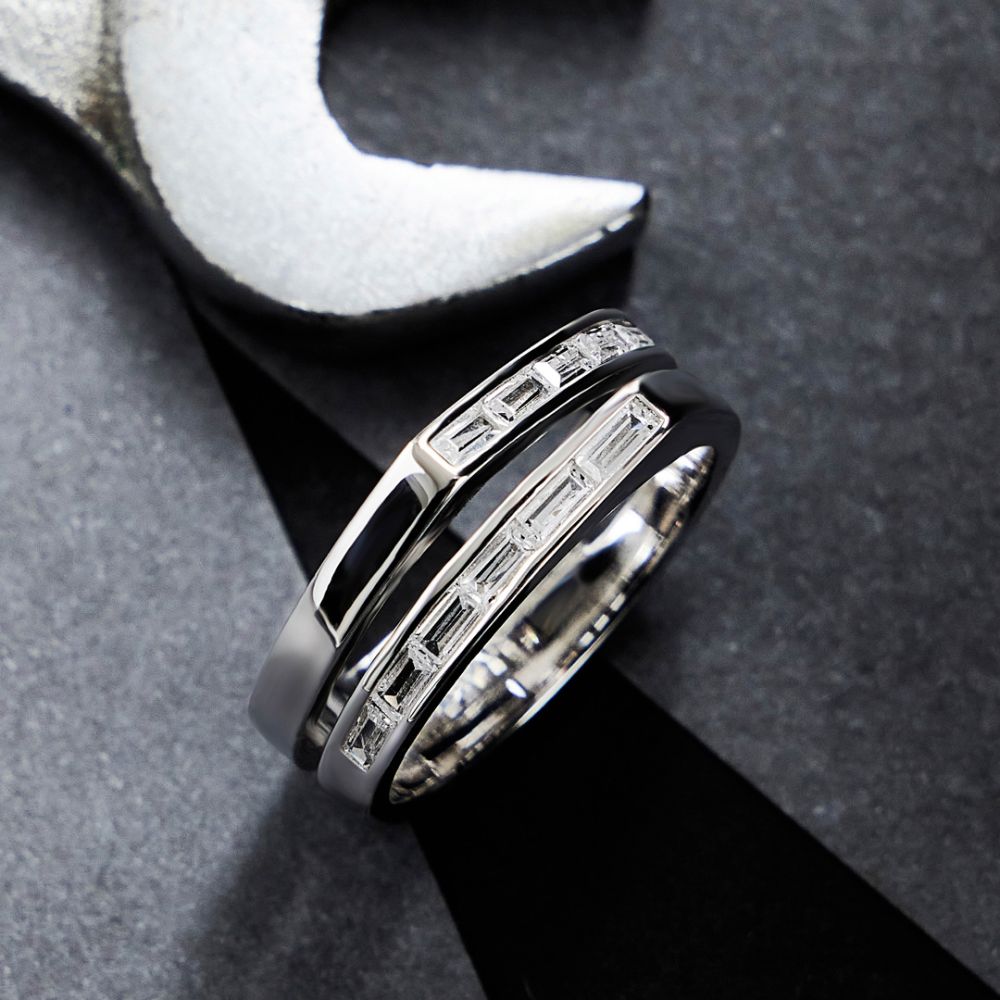 STEP-UP Collection แรงบันดาลใจจาก ความลาดเอียงของพื้นผิว การออกแบบเส้นเฉียงของพื้นผิวโลหะเพิ่มลูกเล่นด้วยเส้นเอียงประดับด้วยอัญมณีทรงสี่เหลี่ยม