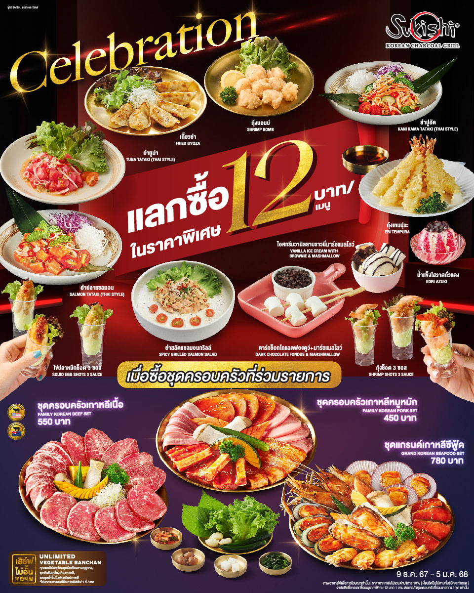 ปลายปีนี้สุขสุด ๆ กับปาร์ตี้ฉลองที่ซูกิชิ! อิ่มอร่อยกับเมนูโปรดในราคาพิเศษเพียง 12 บาท เท่านั้น