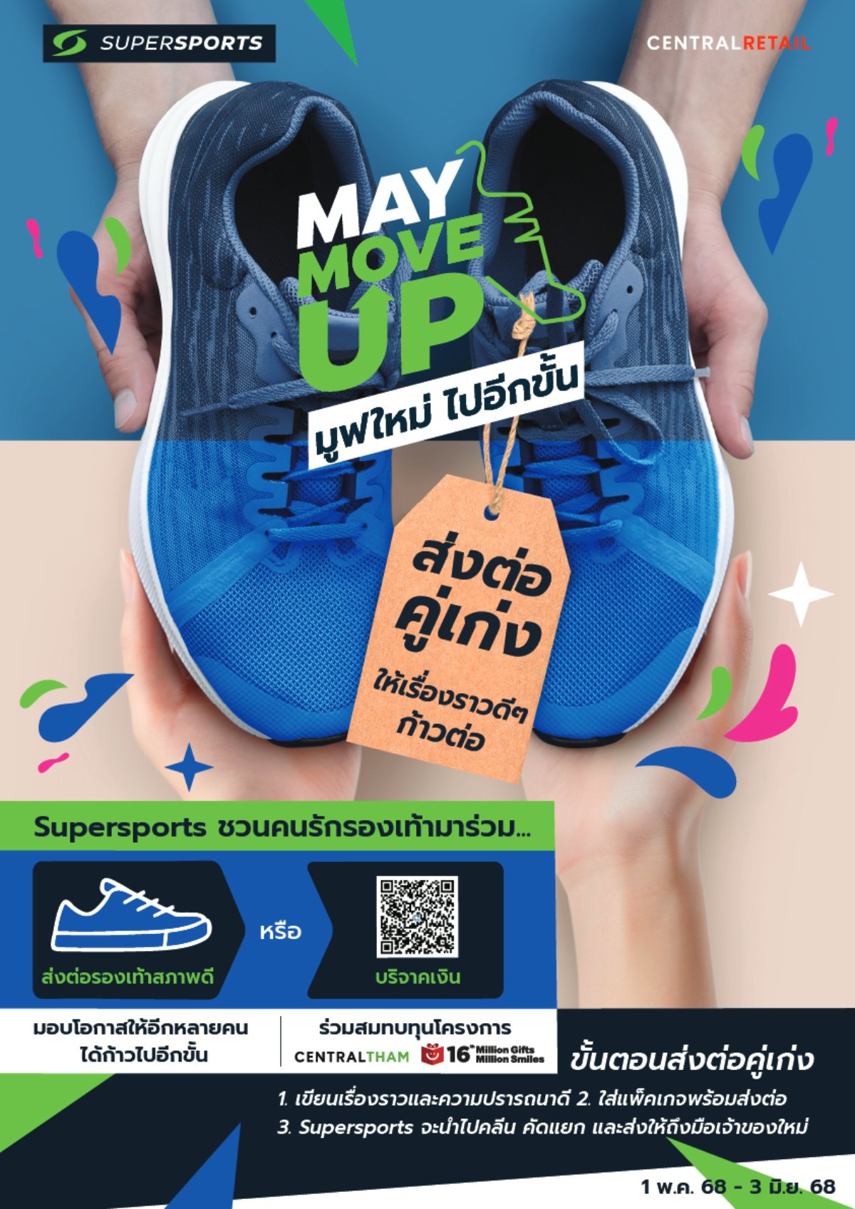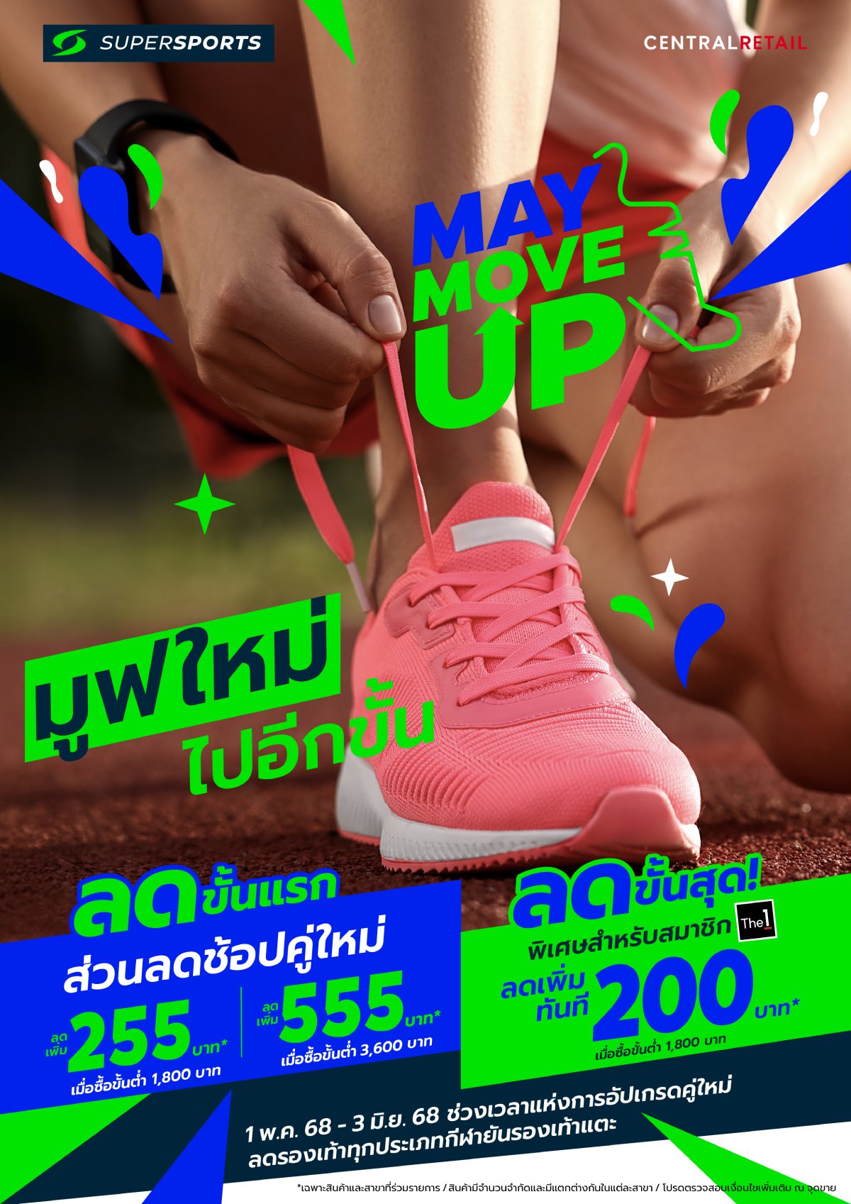 #Supersports #May Move Up #มูฟใหม่ไปอีกขั้น #ช่วงเวลาแห่งการอัปเกรดคู่ใหม่ #ลดรองเท้าทุกประเภทกีฬายันรองเท้าแตะสูงสุด555บาท #สมาชิกThe1ลดเพิ่ม200บาทเมื่อซื้อขั้นต่ำ1800บาท