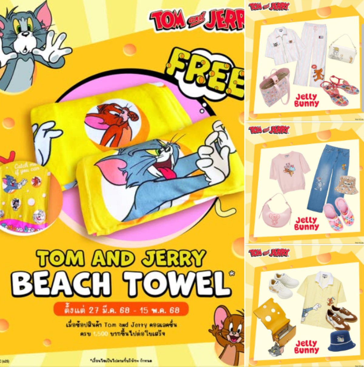 ฟรี Tom and Jerry Beach Towel มูลค่า 399 บาท เมื่อซื้อสินค้าในคอลเลคชั่น Tom and Jerry ครบ 1,500 บาทขึ้นไป/ใบเสร็จ