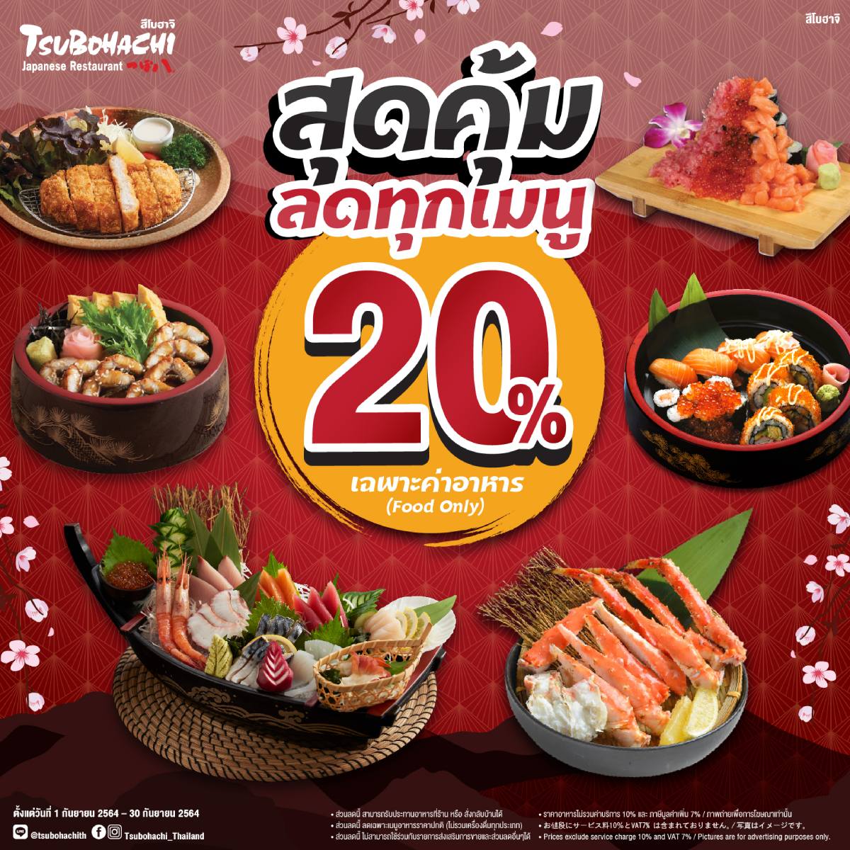 Welcome back “สึโบฮาจิ” จัดหนัก!! #ลดทุกเมนู20% (เฉพาะค่าอาหาร) สุดคุ้มอิ่มอร่อยกับอาหารญี่ปุ่นสไตล์ฮอกไกโด กินให้หายคิดถึงญี่ปุ่นกันไปเลย คุ้มขนาดนี้พลาดไม่ได้แล้ว!!