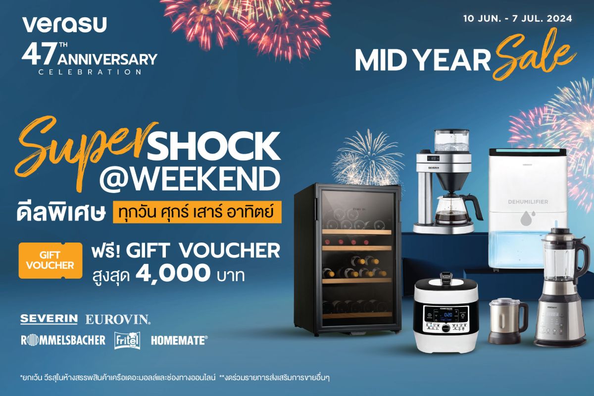 - Super Shock @Weekend ดีลพิเศษ ทุกวันศุกร์ เสาร์ และอาทิตย์ ฟรี! Gift Voucher สูงสุด 4,000 บาท (ยกเว้น วีรสุในห้างสรรพสินค้าเครือเดอะมอลล์และช่องทางออนไลน์)