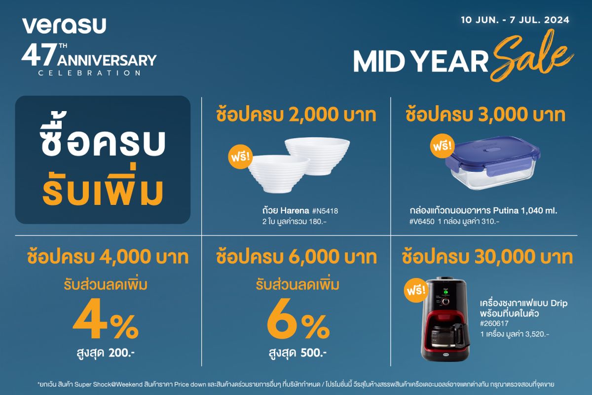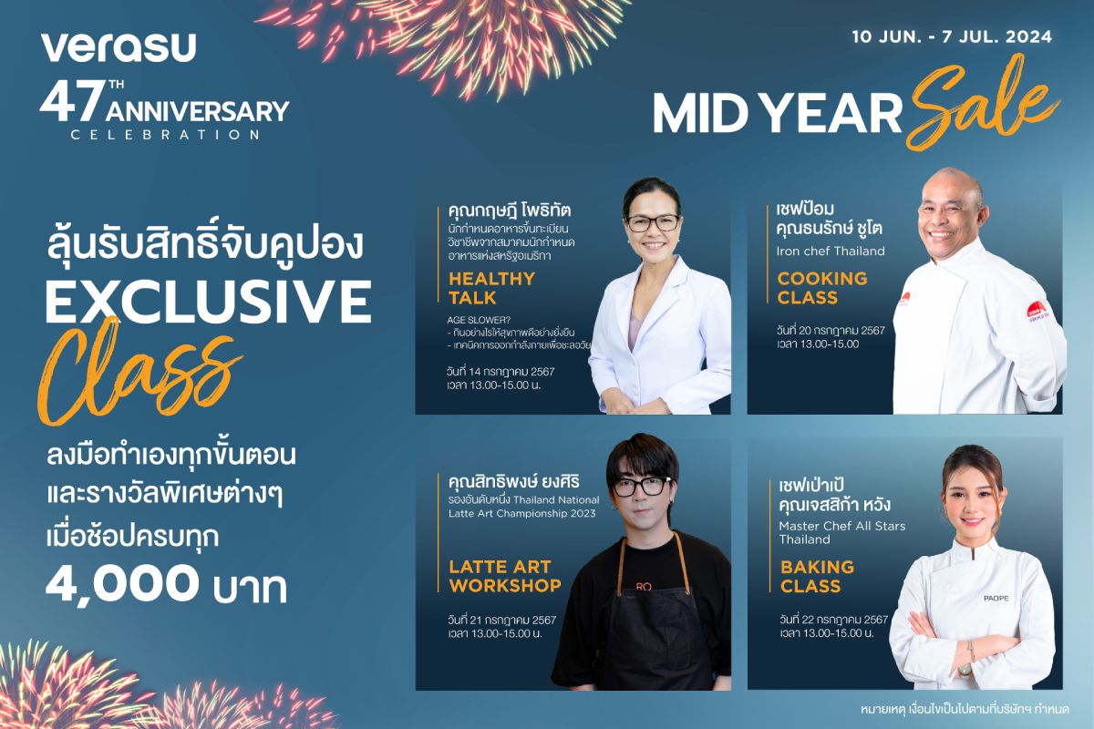 20 Jun 2567- รวมโปรโมชั่นพิเศษ! วีรสุฉลองครบรอบ 47 ปี ลดแรงกลางปี สูงสุด 55% + ผ่อน 0% ทั้งร้าน* ลุ้นรางวัล Exclusive Class และรางวัลพิเศษต่างๆ มากมาย พร้อมกิจกรรม Hands-on Cooking Class ตั้งแต่วันนี้ – 7 ก.ค. 67 ที่วีรสุทุกสาขา และ verasu.com