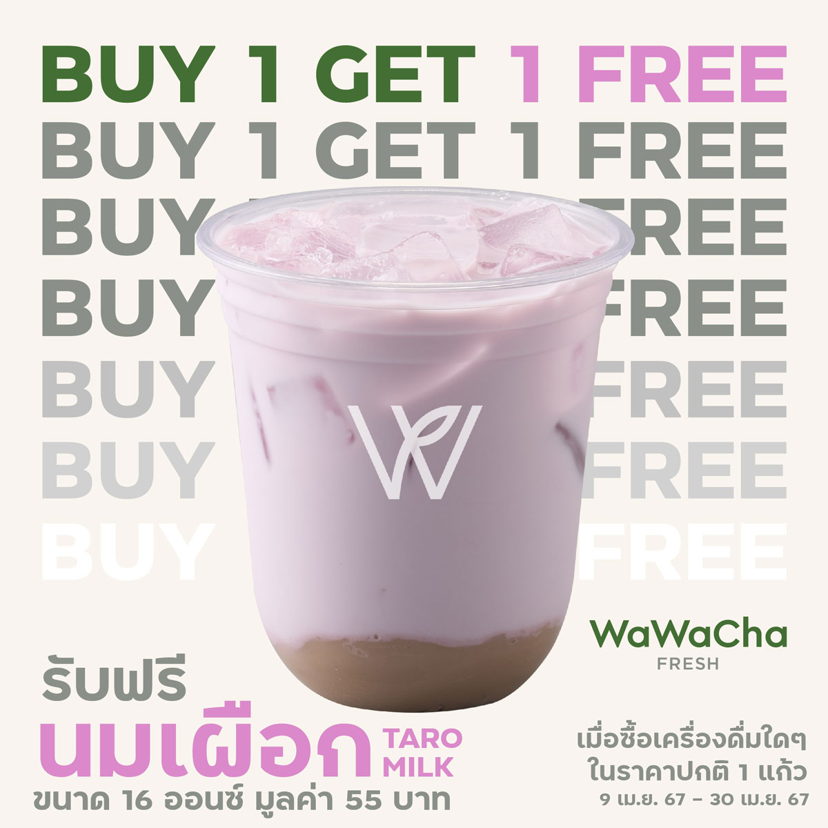 ซื้อ 1 แถม 1 รับฟรี นมเผือก พร้อมเนื้อเผือกเข้มข้น เต็มคำ สดชื่นจนอาม่าต้องซึ้งใจ