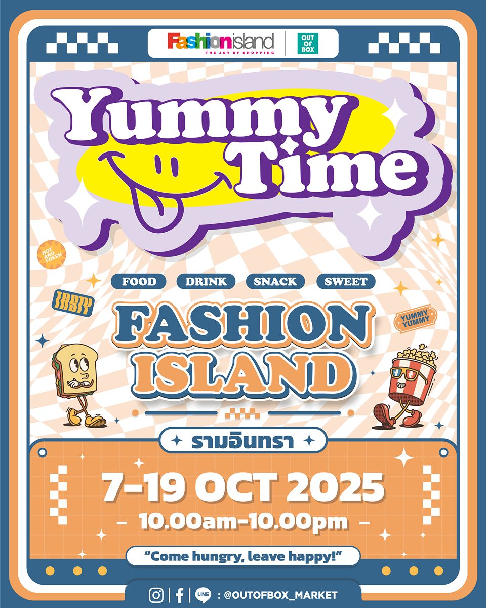 03 Oct 2568Yummy Time @fashionisland เตรียมพบกับงานรวมร้านอาหารกว่า 60 ร้านดังร้านเด็ด ครบทั้งเมนูคาว ของหวาน และของทานเล่นที่ทุกคนพูดถึง ไม่ว่าจะอยากตามรอยร้านฮิตบนโซเชียล หรืออยากชิมเมนูหาทานยาก งานนี้มีครบ! บรรยากาศสบาย เดินชิล ครบทุกความสุขของสายกินตัวจริง