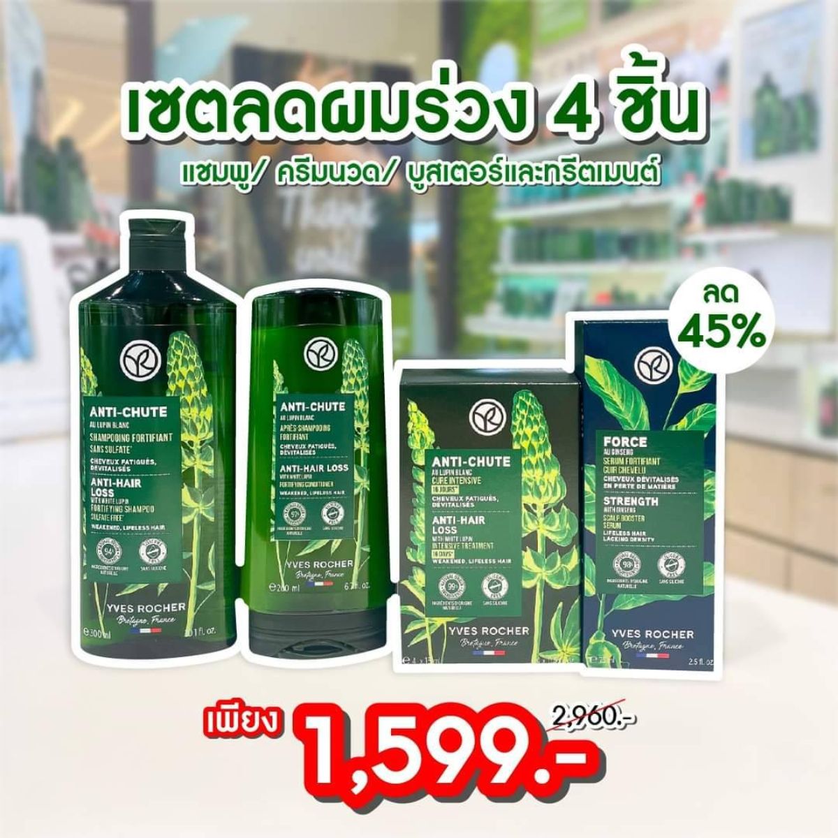 - เซตลดผมร่วง 4 ชิ้น ลดพิเศษ 45% เพียง 1,599.- จากปกติ 2,960.-