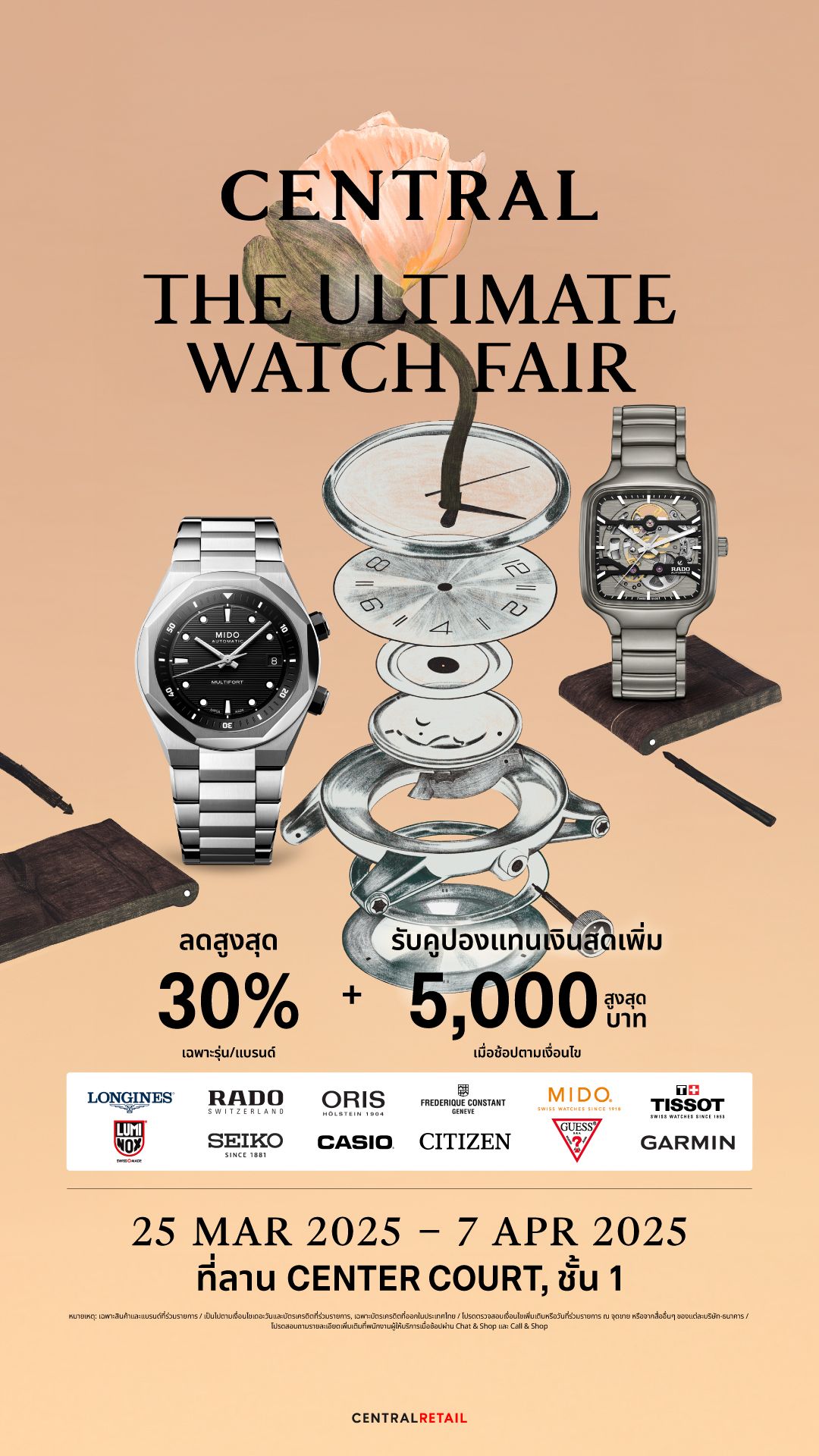- รับฟรี กล่องนาฬิกา travel case มูลค่า 500.- เมื่อช้อปฯครบ 50,000.- ขึ้นไป / ใบเสร็จ / วัน (จำกัด 80 ท่านแรก)