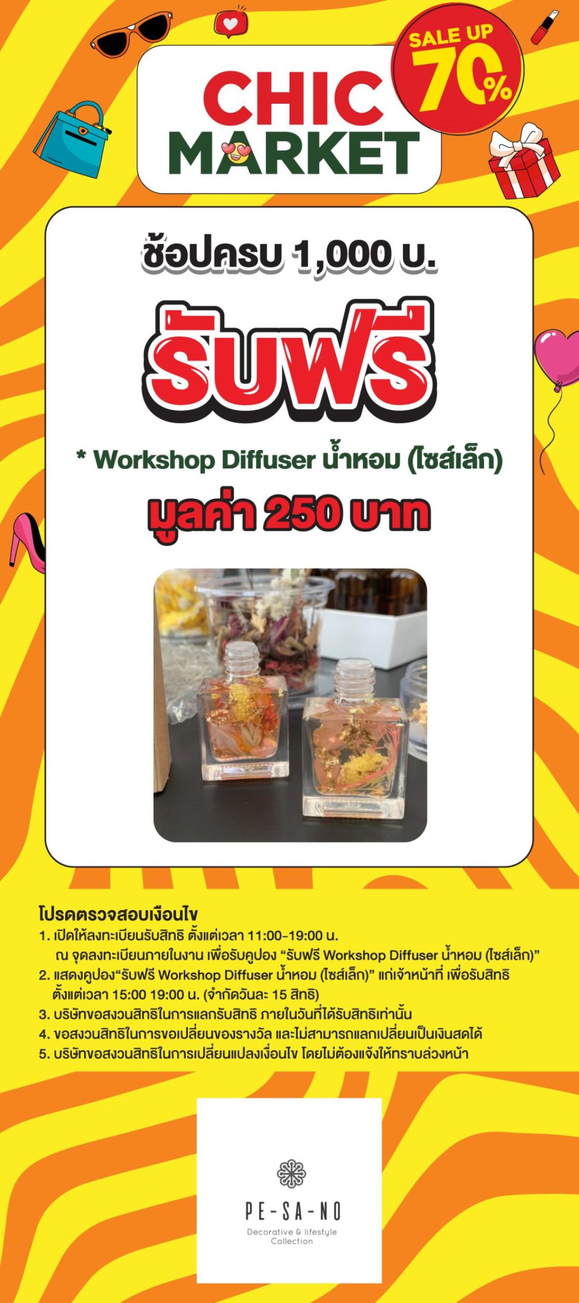 • กิจกรรม Diffuser น้ำหอม (ไซซ์เล็ก) จากร้าน Pesano (จำกัด 15 สิทธิ์/วัน) *กิจกรรมมีเฉพาะ ศุกร์ – เสาร์ – อาทิตย์