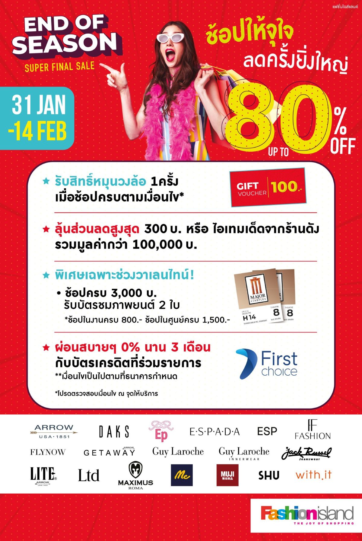 #ทวงคืนพื้นที่น้กช้อป ลดสูงสุด 80% Fashionisland SUPER FINAL SALE ที่งาน ## END OF SEASON
