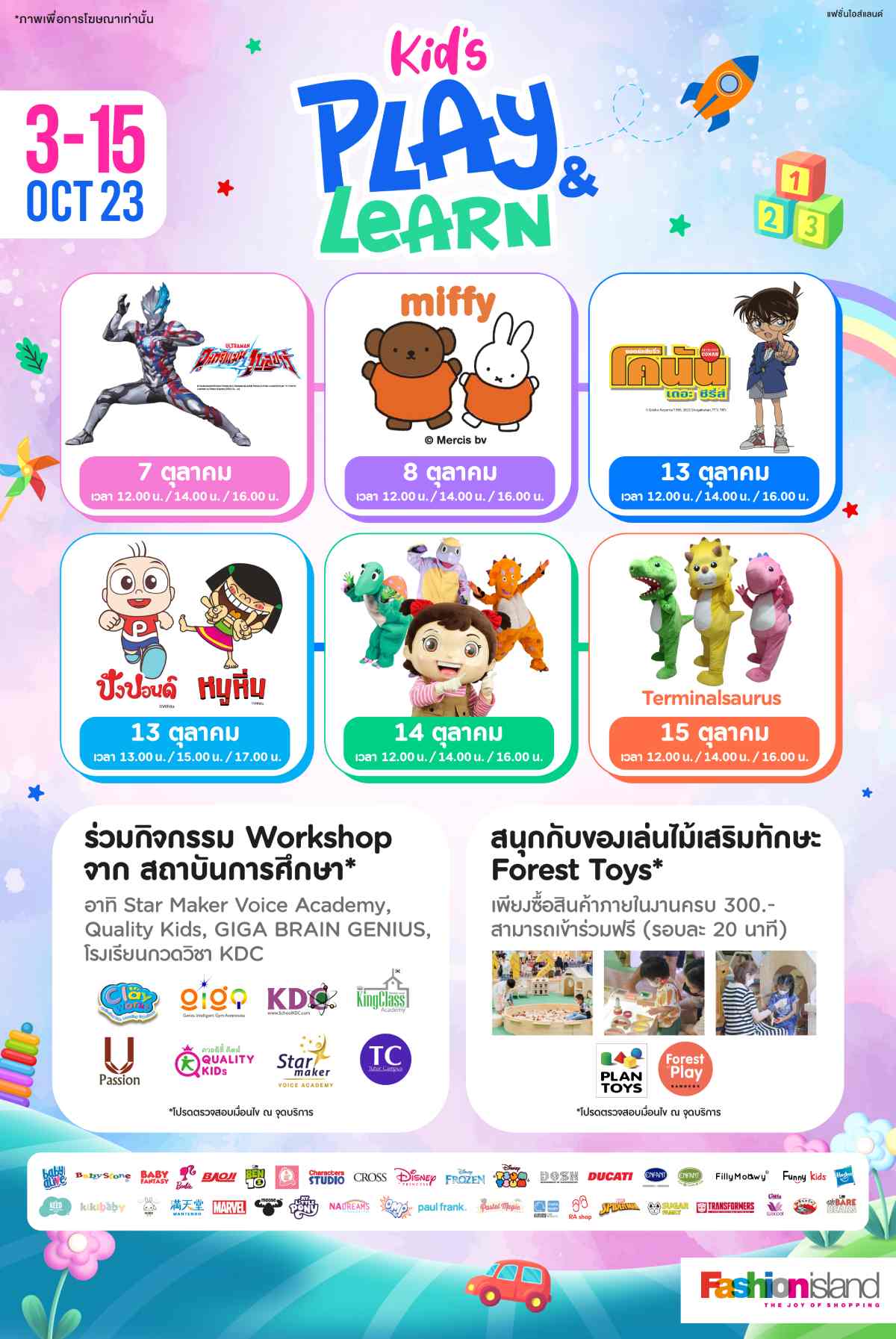 3 – 15 ต.ค. นี้!! ต้อนรับ #ปิดเทอมเติมสนุก สุดหรรษาของคุณหนู ๆ กับงาน ## Kids’ Play & Learn ## สนุกเล่น สนุกเรียนรู้ แบบไร้ขีดจำกัด ใกล้ชิดกับเหล่าตัวการ์ตูนชื่อดัง พร้อมกิจกรรมและโปรโมชั่นหลากหลาย พร้อมทั้งชวนช้อปสินค้าสำหรับเด็กจากแบรนด์ชั้นนำ ลดสูงสุด 70%