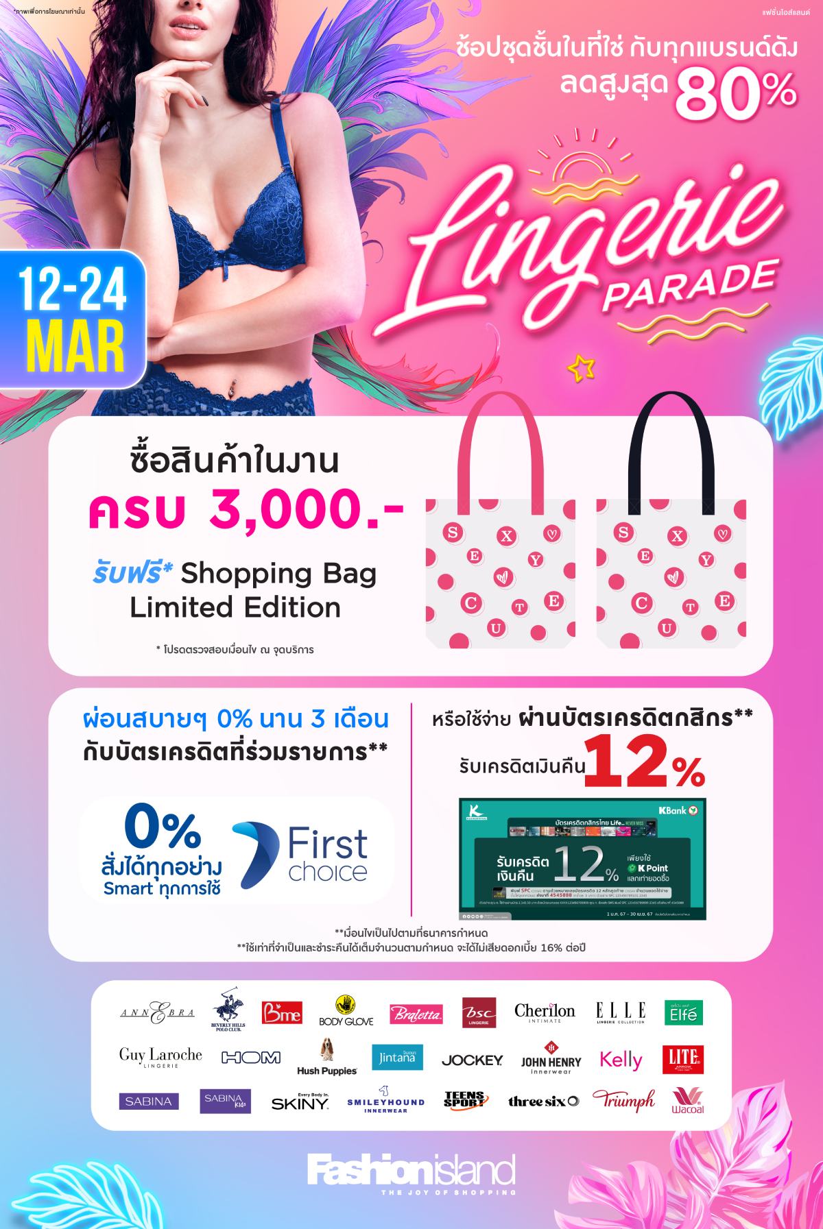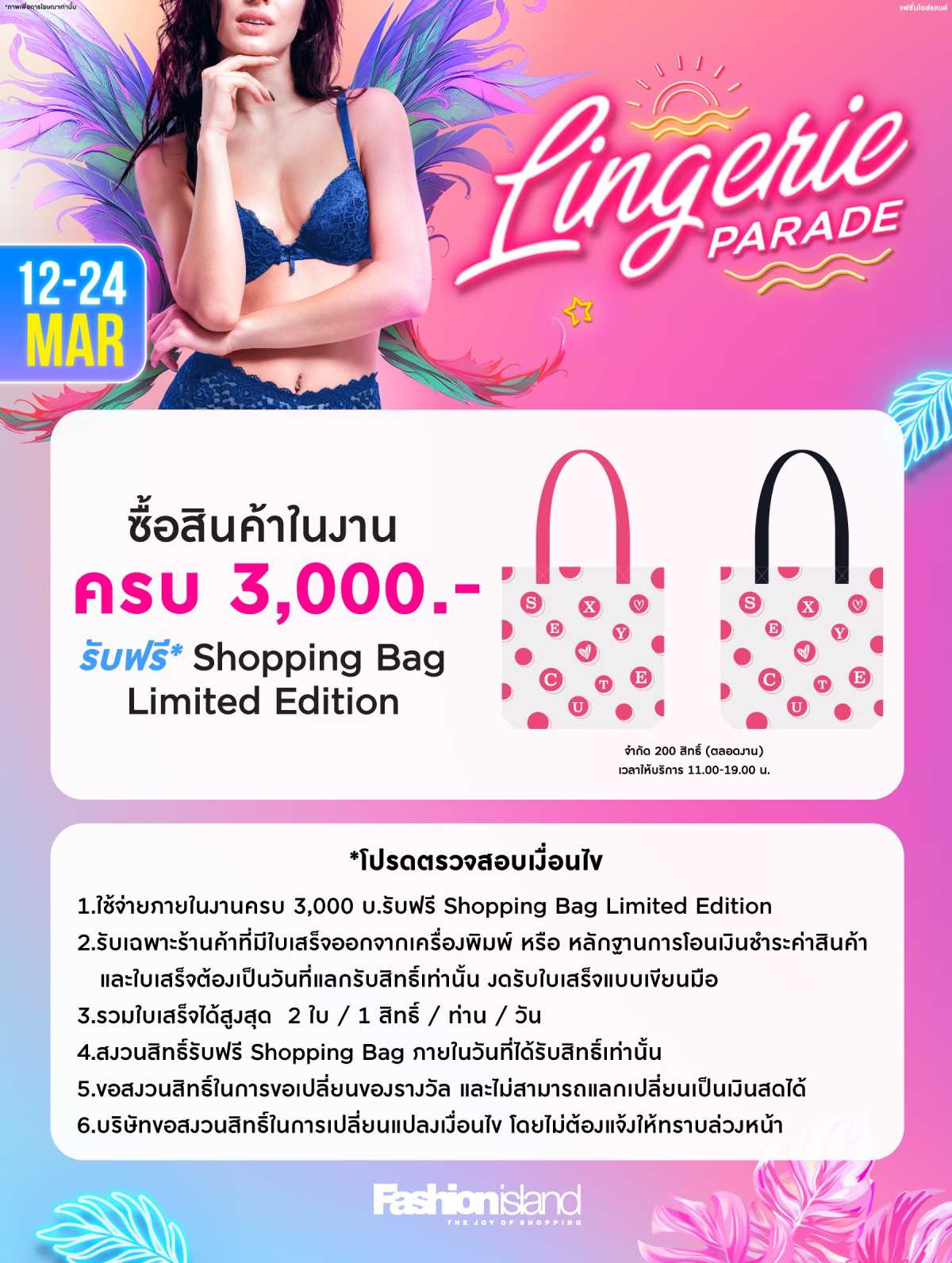 12 – 24 มีนาคมนี้!! ชวนสาว ๆ มาช้อปชุดชั้นในทรงสวย ใส่สบาย จากเเบรนด์ชั้นนำมากมาย ลดสูงสุดถึง 80% พร้อมโปรโมชั่นสุดคุ้มที่งาน ## Lingerie Parade 2024 ##