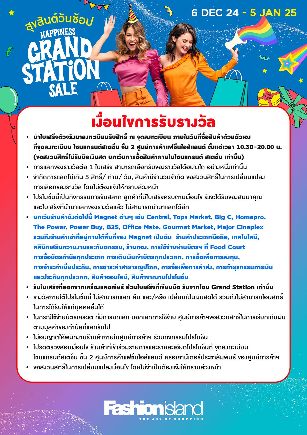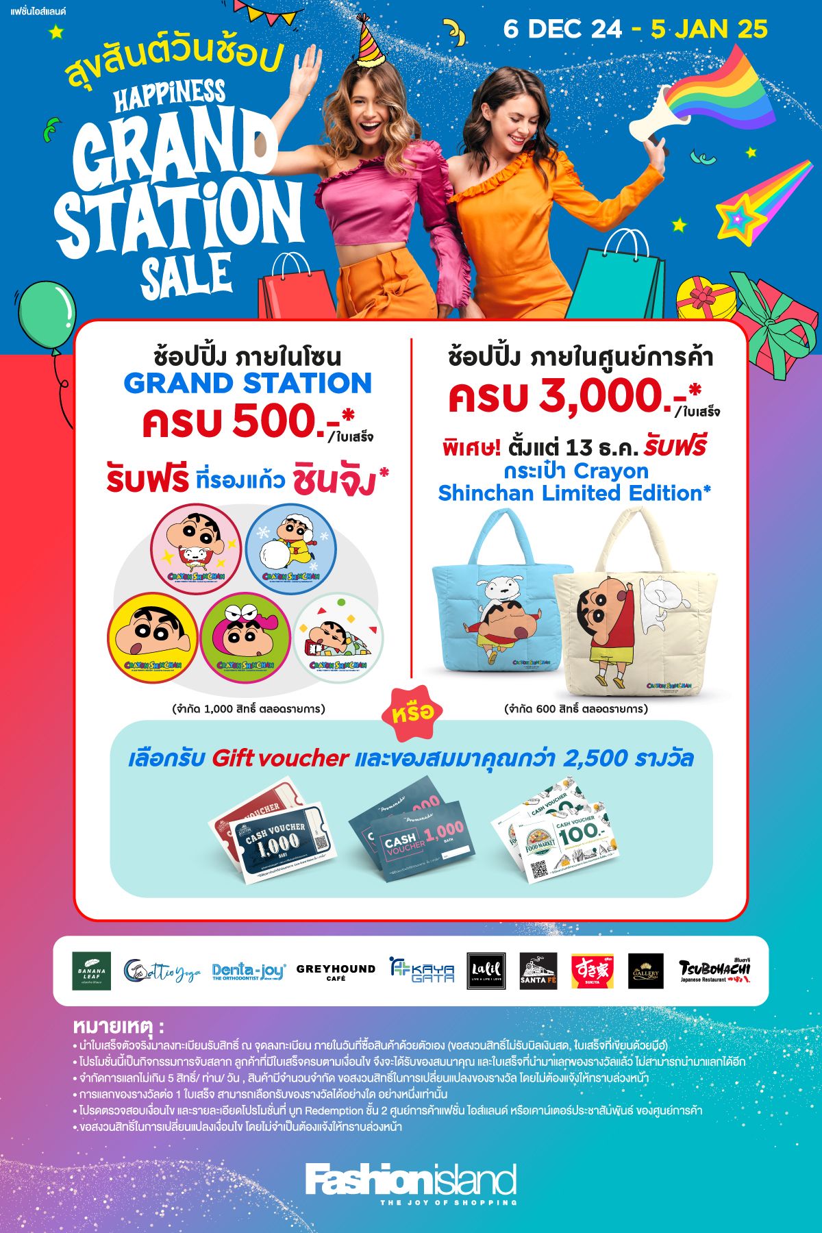 - รับฟรี* กระเป๋า Crayon Shinchan Limited Edition ตั้งแต่ 13 ธ.ค. 67 เมื่อช้อปภายในโซน Grand Station ครบ 3,000 บาท/ ใบเสร็จ (จำกัด 600 สิทธิ์/ ตลอดรายการ)