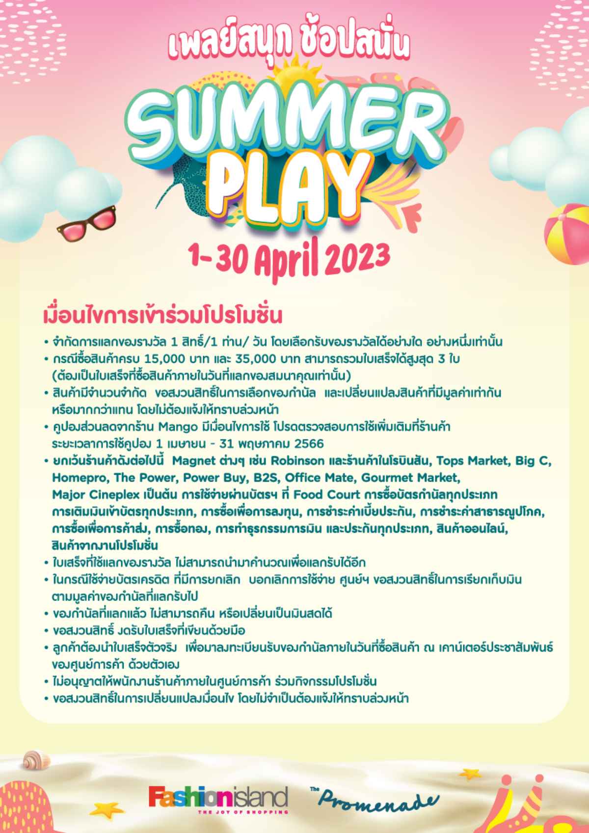 ทะเลบอลขนาดยักษ์ เเละสนุกกับชายหาดจำลอง มาพร้อมซัมเเมอร์โปรโมชั่นสุด Exclusive เมื่อช้อปปิ้งหรือรับประทานอาหารภายในศูนย์การค้า เเลกรับของกำนัลมากมาย
