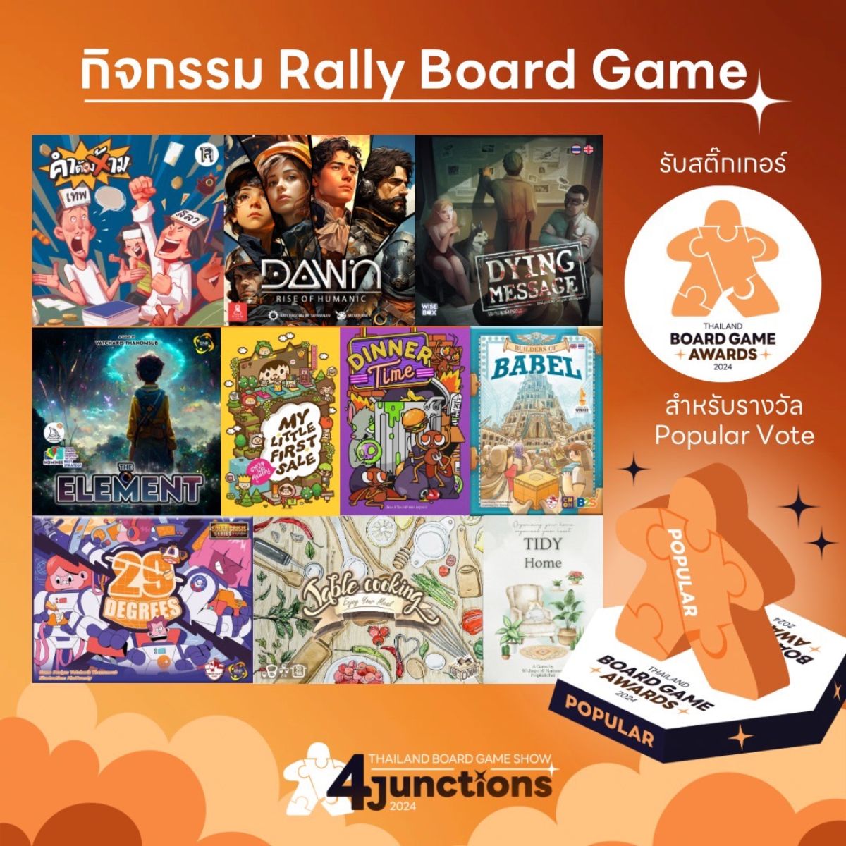ปีนี้ยังเป็นครั้งแรกที่นำบอร์ดเกม 10 เกมสุดท้ายที่เข้าร่วมพิจารณารางวัล Thailand Board Game Awards 2024 มาจัดเป็นกิจกรรม Rally อีกด้วย
