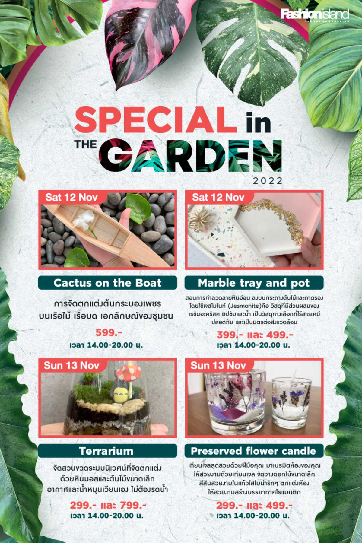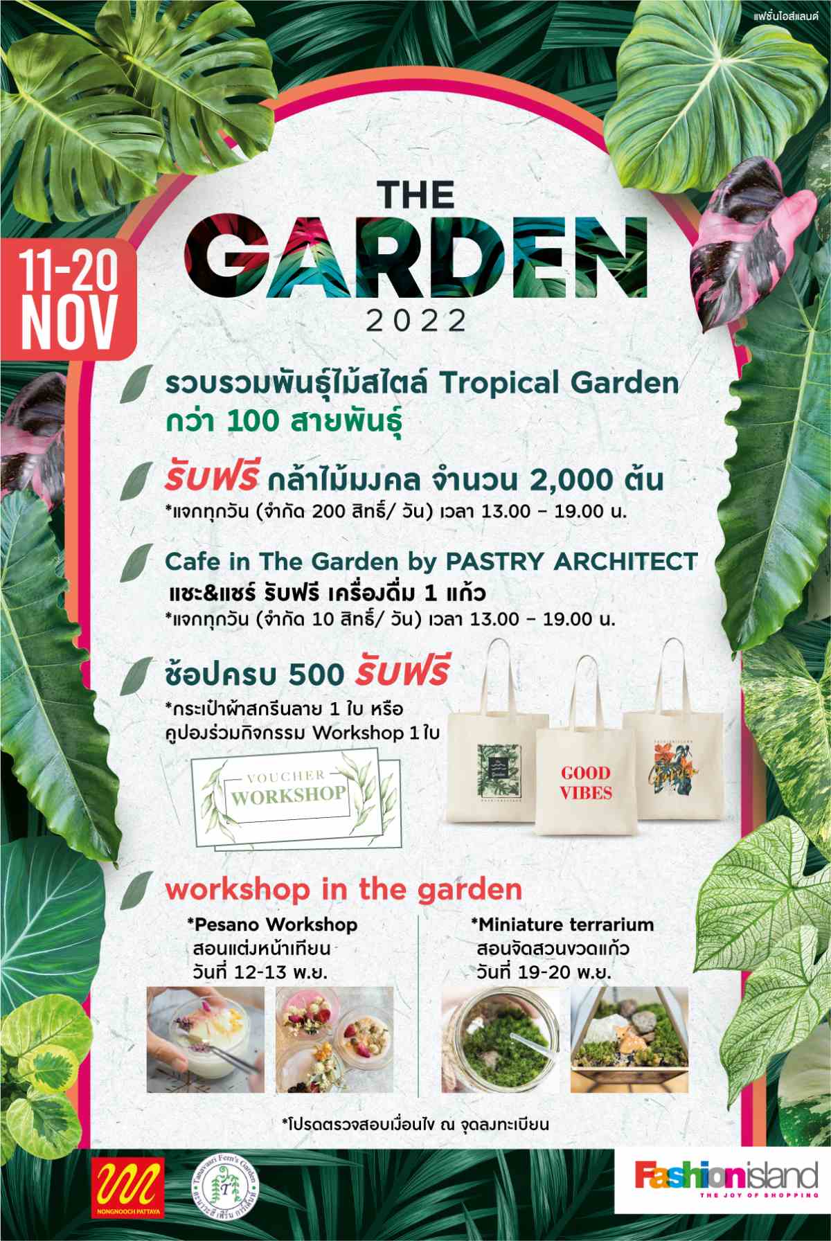 พันธุ์ไม้ไฮไลท์ อาทิ ไม้ใบตระกูล Philodendron , Alocia, Monsterra, รวมถึงพันธุ์ไม้ด่าง พันธุ์ไม้หายากต่าง ๆ เเละกิจกรรมภายในงานอีกมากมาย อาทิ มุมคาเฟ่เก๋ๆที่ให้คุณได้มาดื่มด่ำกับบรรยากาศสุดชิลปล่อยใจให้เพลิดเพลิน