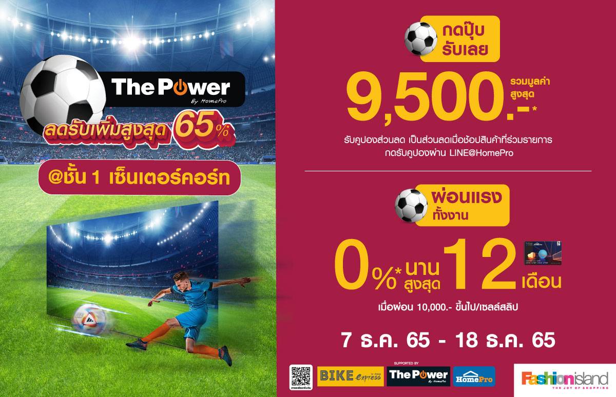 - ผ่อนแรงทั้งงาน 0%* นานสูงสุด 12 เดือน (เมื่อผ่อน 10,000 บาทขึ้นไป/ เซลล์สลิป)