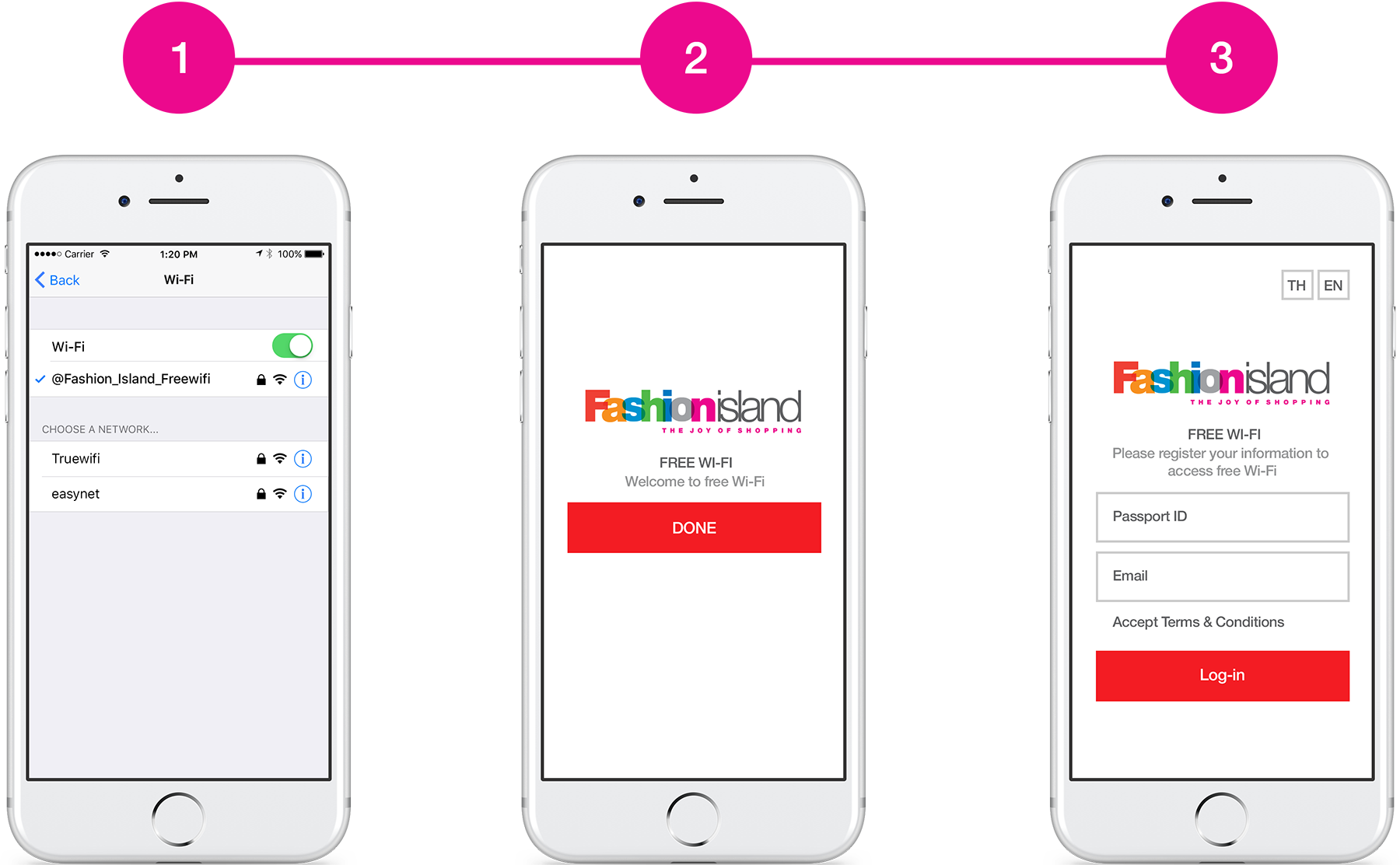 บริการ Wifi ฟรี แก่ลูกค้าสามารถลงทะเบียนได้ด้วยตนเองหรือที่เคาน์เตอร์ประชาสัมพันธ์ชั้น 1