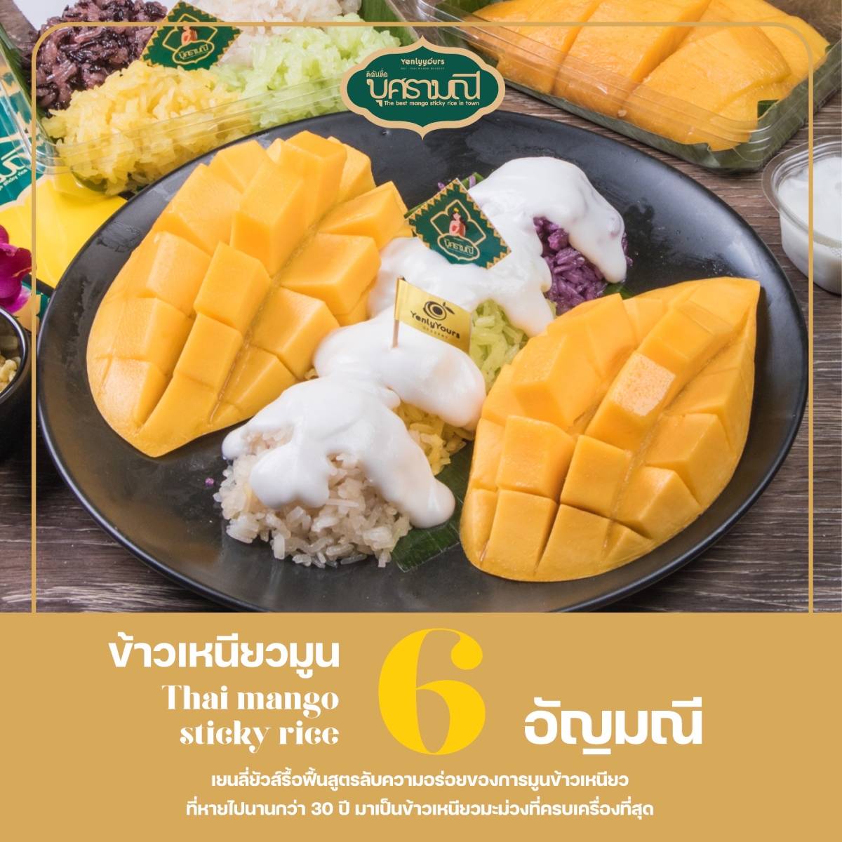 เปิดตัวครั้งแรก! “ดิฉันชื่อ บุศรามณี” ข้าวเหนียวมะม่วงสูตรเก่าแก่ของคุณป้าบุศราจากจังหวัดเชียงรายโดยได้ร้านมะม่วงปั่นชื่อดัง เยนลี่ยัวส์ มารื้อฟื้นสูตรที่หายไปนานกว่า 30 ปี และเป็นข้าวเหนียวมูนที่ครบเครื่องที่สุดเท่าที่เคยเกิดขึ้นมา มีทั้ง ข้าวเหนียวมะม่วงปั่น ข้าวเหนียวมะม่วงใบเตยหยก ข้าวเหนียวมะม่วงไรซ์เบอรี่นิลกาฬ ข้าวเหนียวฟักทองบุษราคัม ข้าวเหนียวมูนกะทิขาวทองคำ ข้าวเหนียวมูนมันม่วงพลอยไพลิน ข้าวเหนียวมูนเผือกมุกดา #มะม่วงไทยทานกับอะไรก็อร่อย #มะม่วงไทยอันดับ1ของโลก