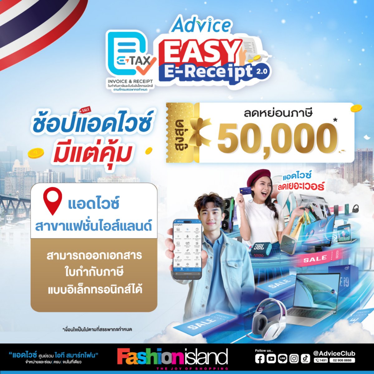 ช้อปดีมีคืน 2568 มาแล้ววว อัปเดตเงื่อนไข Easy E-Receipt 2.0 ช้อปที่ Advice ลดหย่อนภาษีได้สูงสุด 30,000 บาท