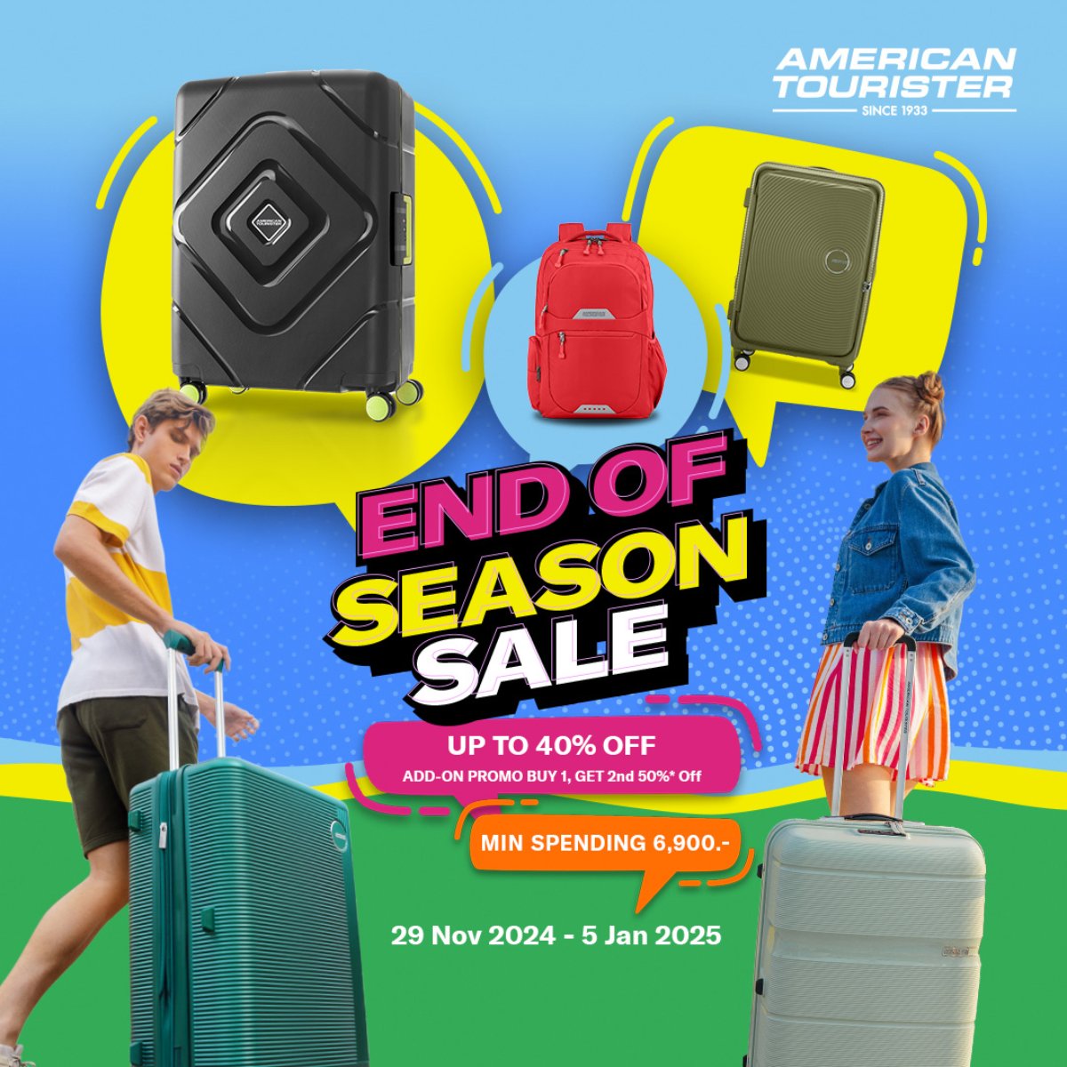 คนไหนมีแพลนจะเดินทาง บินลัดฟ้าเคานต์ดาวน์สิ้นปี บอกเลยว่า American Tourister กระเป๋าเดินทางลดเดือดส่งท้ายปี สูงสุด 40% ไม่ว่าจะกระเป๋าล้อลาก กระเป๋าเป้ หรือจะกระเป๋าคอสบอดี้ มีหมดเลยน้า