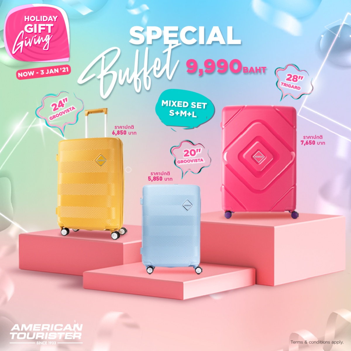 พิเศษที่ Special BUFFET 9,990 บาท (คละสี คละไซส์เล็ก, กลาง, ใหญ่ สำหรับกระเป๋าเดินทางรุ่น Trigard และ Groovista