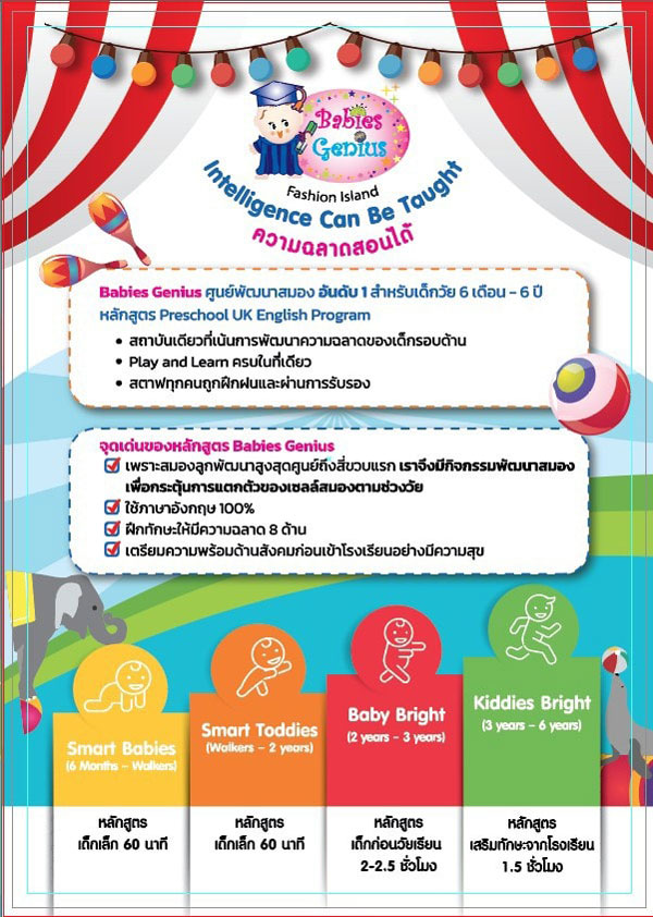 ผู้ปกครองที่สนใจ หาที่เรียนให้กับน้องๆเพื่อเพิ่มความฉลาดในทุกๆด้าน ตั้งแต่ 6 เดือน ถึงอายุ 6 ปี